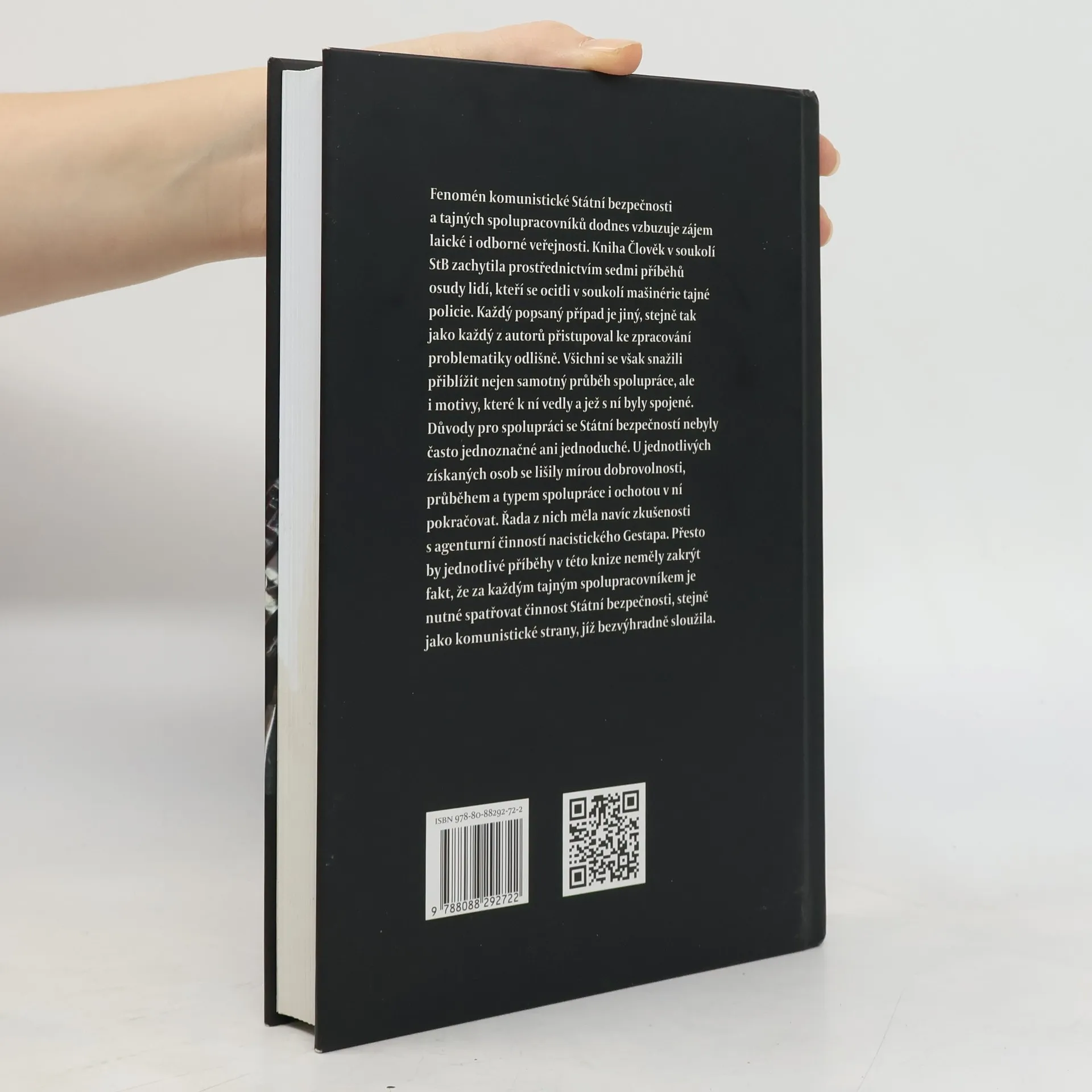 Fenomén komunistické Státní bezpečnosti a tajných spolupracovníků dodnes vzbuzuje zájem laické i odborné veřejnosti. Kniha Člověk v soukolí StB zachytila prostřednictvím sedmi příběhů osudy lidí, kteří se ocitli v soukolí mašinérie tajné policie. Každý popsaný případ je jiný, stejně tak jako každý z autorů přistupoval ke zpracování problematiky odlišně. Všichni se však snažili přiblížit nejen samotný průběh spolupráce, ale i motivy, které k ní vedly a jež s ní byly spojené. Důvody pro spolupráci se Státní bezpečností nebyly často jednoznačné ani jednoduché. U jednotlivých získaných osob se lišily mírou dobrovolnosti, průběhem a typem spolupráce i ochotou v ní pokračovat. Řada z nich měla navíc zkušenosti s agenturní činností nacistického Gestapa. Přesto by jednotlivé příběhy v této knize neměly zakrýt fakt, že za každým tajným spolupracovníkem je nutné spatřovat činnost Státní bezpečnosti, stejně jako komunistické strany, jíž bezvýhradně sloužila.