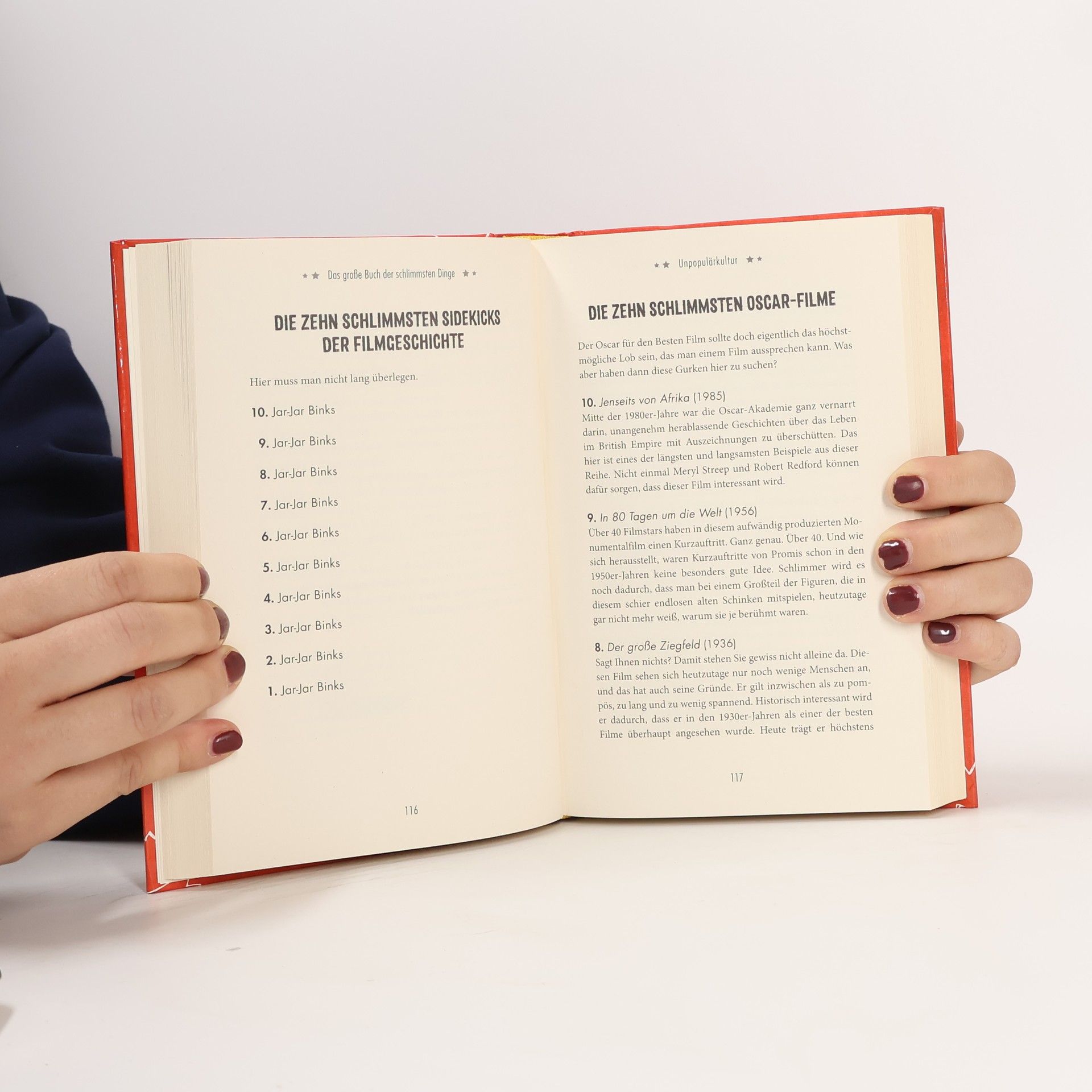 Kennen Sie die zehn dümmsten Tiere der Schöpfung, die zehn traurigsten Orte der Welt, die zehn schlimmsten Sexszenen der Filmgeschichte oder die zehn gruseligsten Parasiten, die uns Menschen befallen können? Neugierig geworden? Dann erwartet Sie in 162 Kapiteln ein Best-of der wohl übelsten und schlimmsten Dinge auf diesem Planeten. Sam Jordisons Sammelsurium ist die wohl wunderbarste Zusammenstellung menschlichen Versagens, krasser Fehleinschätzungen, vermeidbarer Katastrophen und wirklich, wirklich schlechter Musikalben aller Zeiten.