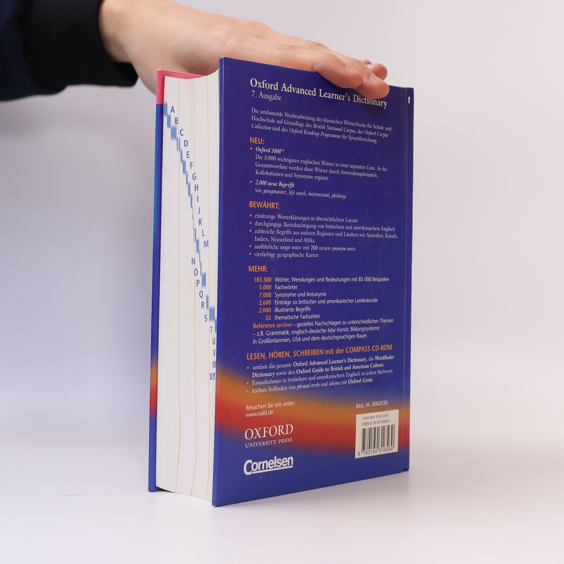 The Oxford Advanced Learner's Dictionary gives more help and more support than any other dictionary at this level. It focuses on learners' need to understand and use words correctly, and to develop their core language skills. The 8th edition features a new interactive Oxford iWriter and a new 32- page Oxford Writing Tutor, specifically designed to improve writing skills. NEW Oxford iWriter and Oxford Writing Tutor: Teachers and students around the world have told us how difficult it is towrite well in English. Now students can learn how to structure their essays, how to write different types of essays and presentations, and how to write formal English.