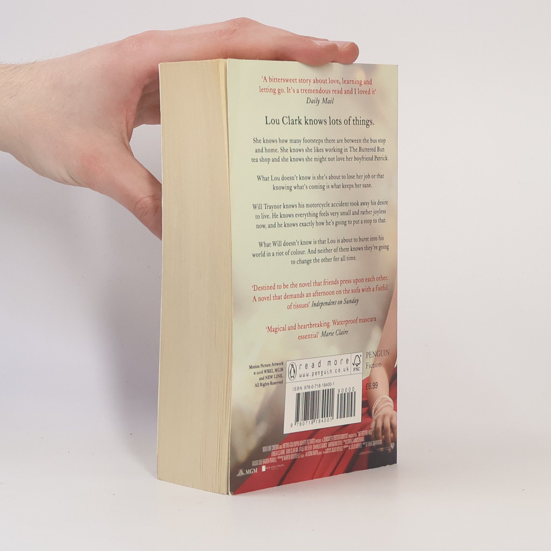 Lou Clark knows lots of things. She knows how many footsteps there are between the bus stop and home. She knows she likes working in The Buttered Bun teashop and she knows she might not love her boyfriend Patrick.What Lou doesn't know is she's about to lose her job or that knowing what's coming is what keeps her sane.Will Traynor knows his motorcycle accident took away his desire to live. He knows everything feels very small and rather joyless now and he knows exactly how he's going to put a stop to that.What Will doesn't know is that Lou is about to burst into his world in a riot of colour. And neither of them knows they're going to change the other for all time.