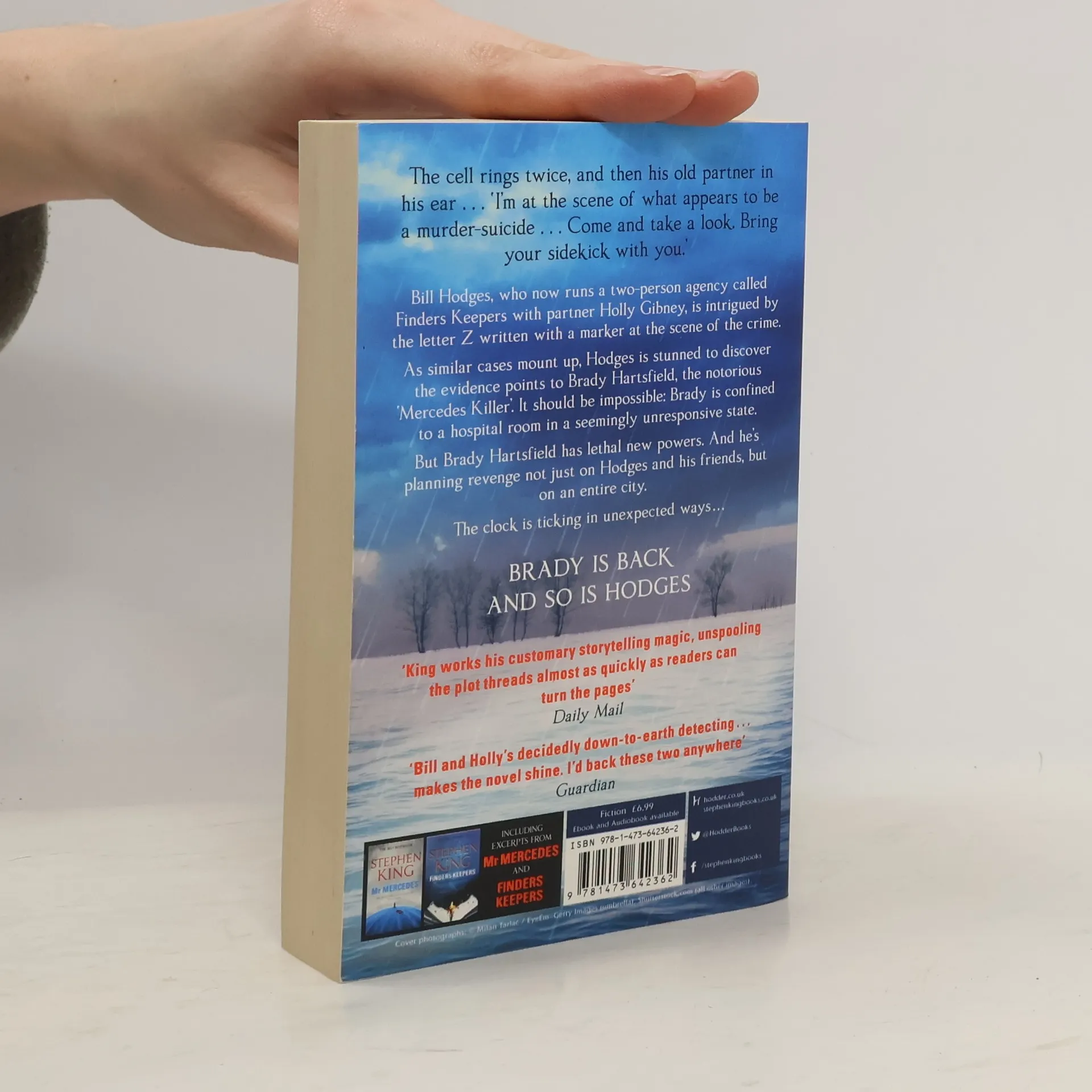 A suspenseful closing volume. Brady Hartsfield, the Mercedes killer, returns to diabolically drive his victims to suicide in this last installment, starring the ever more winning Bill Hodges and Holly Gibney.
