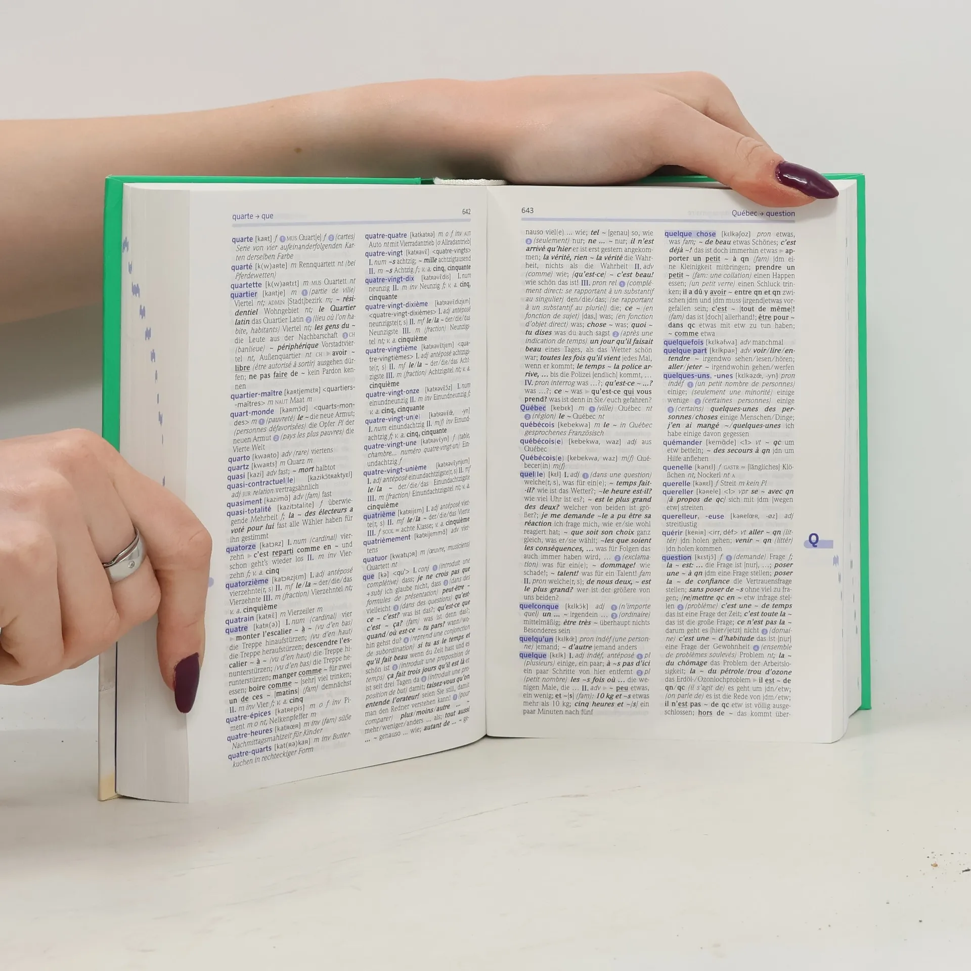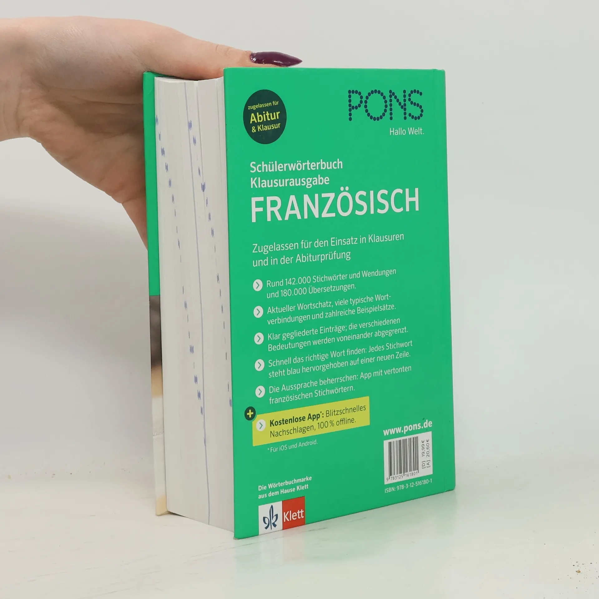 Zugelassen für den Einsatz in Klausuren und in der Abiturprüfung Rund 145.000 Stichwörter und Wendungen. Aktueller Wortschatz, viele typische Wortverbindungen und zahlreiche Beispielsätze. Klar gegliederte Einträge. Schnell das richtige Wort finden: jedes Stichwort steht blau hervorgehoben auf einer neuen Zeile. Die Aussprache beherrschen: mit vertonten französischen Stichwörtern. Die Verben meistern: alle Verbformen auf einem Blick. Inklusive kostenloser Wörterbuch-App für iOS und Android: Blitzschnelles Nachschlagen zu 100% offline!