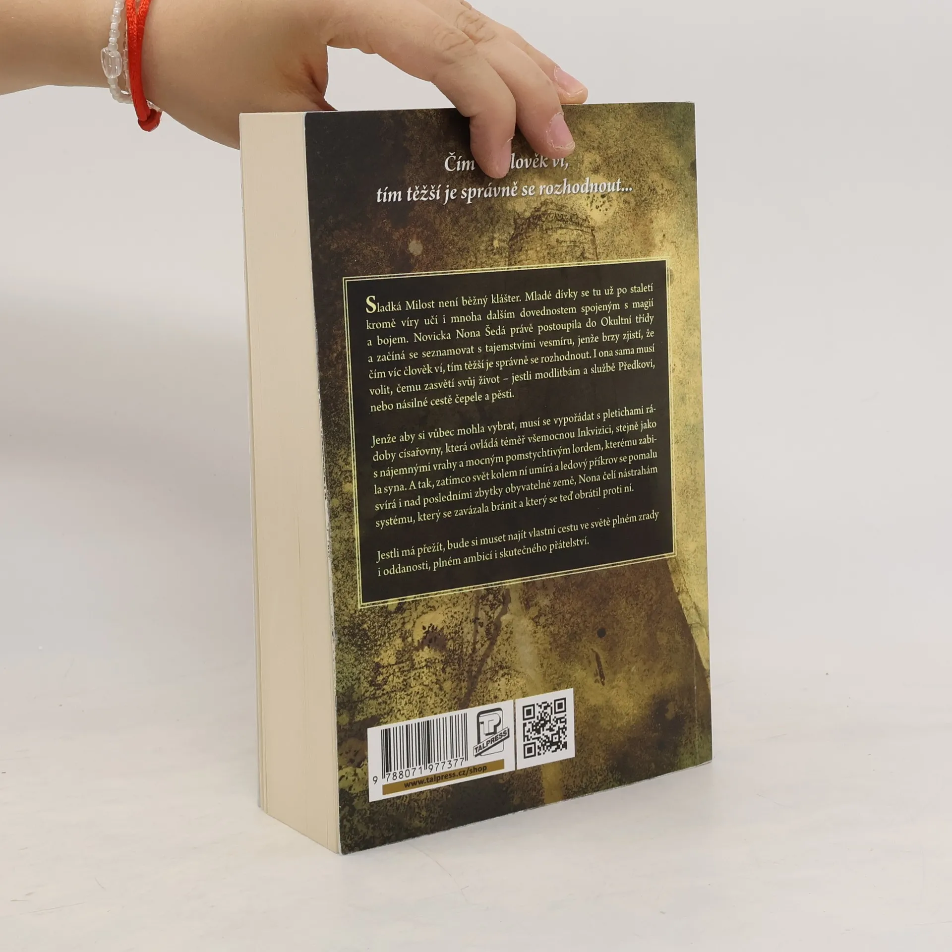Sladká Milost není běžný klášter. Mladé dívky se tu už po staletí kromě víry učí i mnoha dalším dovednostem spojeným s magií a bojem. Novicka Nona Šedá právě postoupila do Okultní třídy a začíná se seznamovat s tajemstvími vesmíru, jenže brzy zjistí, že čím víc člověk ví, tím těžší je správně se rozhodnout. I ona sama musí volit, čemu zasvětí svůj život – jestli modlitbám a službě Předkovi, nebo násilné cestě čepele a pěsti. Jenže aby si vůbec mohla vybrat, musí se vypořádat s pletichami rádoby císařovny, která ovládá téměř všemocnou Inkvizici, stejně jako s nájemnými vrahy a mocným pomstychtivým lordem, kterému zabila syna. A tak, zatímco svět kolem ní umírá a ledový příkrov se pomalu svírá i nad posledními zbytky obyvatelné země, Nona čelí nástrahám systému, který se zavázala bránit a který se teď obrátil proti ní. Jestli má přežít, bude si muset najít vlastní cestu ve světě plném zrady i oddanosti, plném ambicí i skutečného přátelství.