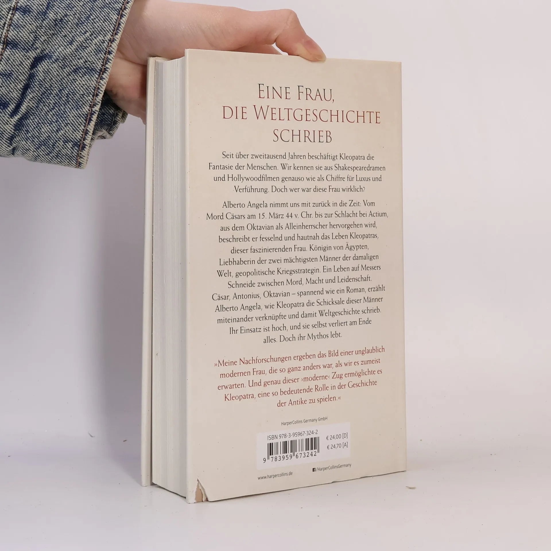 Eine Frau, die Weltgeschichte schrieb Seit über zweitausend Jahren beschäftigt Kleopatra die Fantasie der Menschen. Wir kennen sie aus Shakespearedramen und Hollywoodfilmen genauso wie als Chiffre für Luxus und Verführung. Doch wer war diese Frau wirklich? Alberto Angela nimmt uns mit zurück in die Zeit: Vom Mord Cäsars am 15. März 44 v. Chr. bis zur Schlacht bei Actium, aus dem Oktavian als Alleinherrscher hervorgehen wird, beschreibt er fesselnd und hautnah das Leben Kleopatras, dieser faszinierenden Frau. Königin von Ägypten, Liebhaberin der zwei mächtigsten Männer der damaligen Welt, geopolitische Kriegsstrategin. Ein Leben auf Messers Schneide zwischen Mord, Macht und Leidenschaft. Cäsar, Antonius, Oktavian – spannend wie ein Roman, erzählt Alberto Angela, wie Kleopatra die Schicksale dieser Männer miteinander verknüpfte und damit Weltgeschichte schrieb. Ihr Einsatz ist hoch, und sie selbst verliert am Ende alles. Doch ihr Mythos lebt. » Meine Nachforschungen ergeben das Bild einer unglaublich modernen Frau, die so ganz anders war, als wir es zumeist erwarten. Und genau dieser ›moderne‹ Zug ermöglichte es Kleopatra, eine so bedeutende Rolle in der Geschichte der Antike zu spielen. « Alberto Angela » Vielmehr verbindet Angela auf wunderbare Weise populäre, ja sinnliche Darstellung mit harter Quellenkritik, die aus einem soliden Wissen über das Zeitalter seiner Akteure schöpft. « WELT Online