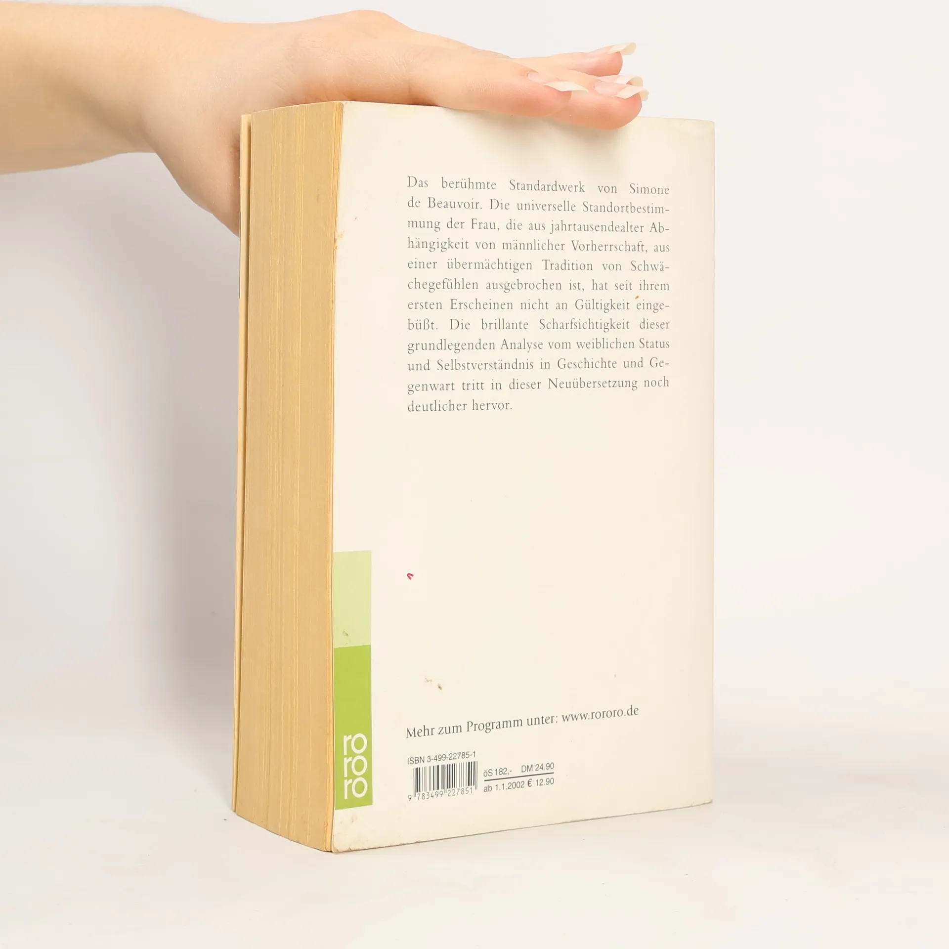 Das berühmte Standardwerk von Simone de Beauvoir. Die universelle Standortbestimmung der Frau, die aus jahrtausendealter Abhängigkeit von männlicher Vorherrschaft ausgebrochen ist, hat nichts an Gültigkeit eingebüßt. Die Scharfsichtigkeit der grundlegenden Analyse tritt in der Neuübersetzung noch deutlicher hervor.