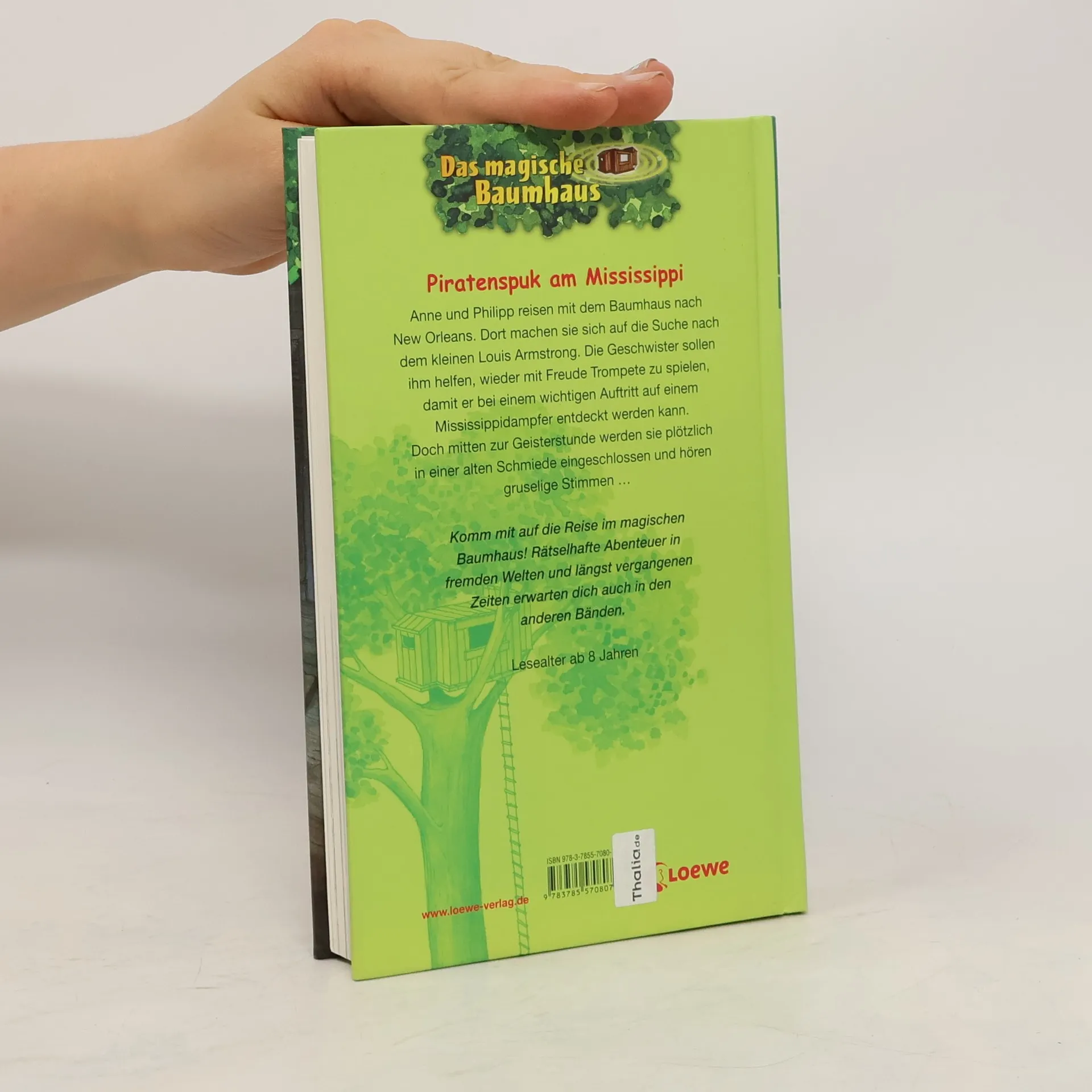 Das Buch ist bei deiner Buchhandlung vor Ort und bei vielen Online-Buchshops erhältlich! + Bücher, die Kinder gerne lesen wollen + Beliebte Themen: Abenteuer, Tiere, fremde Länder und Piraten + Hochwertiges Hardcover + Mit vielen Illustrationen + Bereits über 10 Millionen verkaufte Bücher der Baumhaus-Reihe + Ausgewogenes Text-Bild-Verhältnis + Große Schrift + Kurze Kapitel + Anne und Philipp reisen mit dem Baumhaus nach New Orleans. Dort machen sie sich auf die Suche nach dem kleinen Louis Armstrong. Die Geschwister sollen ihm helfen, wieder mit Freude Trompete zu spielen, damit er bei einem wichtigen Auftritt auf einem Mississippidampfer entdeckt werden kann. Doch mitten zur Geisterstunde werden sie plötzlich in einer alten Schmiede eingeschlossen und hören gruselige Stimmen … Komm mit auf die Reise im magischen Baumhaus! Rätselhafte Abenteuer in fremden Welten und längst vergangenen Zeiten erwarten dich auch in den anderen Bänden. Die beliebte Kinderbuch-Reihe von Bestsellerautorin Mary Pope Osborne! Die Geschwister Anne und Philipp reisen mit dem magischen Baumhaus durch die Zeit. Sie erleben spannende Abenteuer, entdecken ferne Länder und lernen viele berühmte Persönlichkeiten kennen.