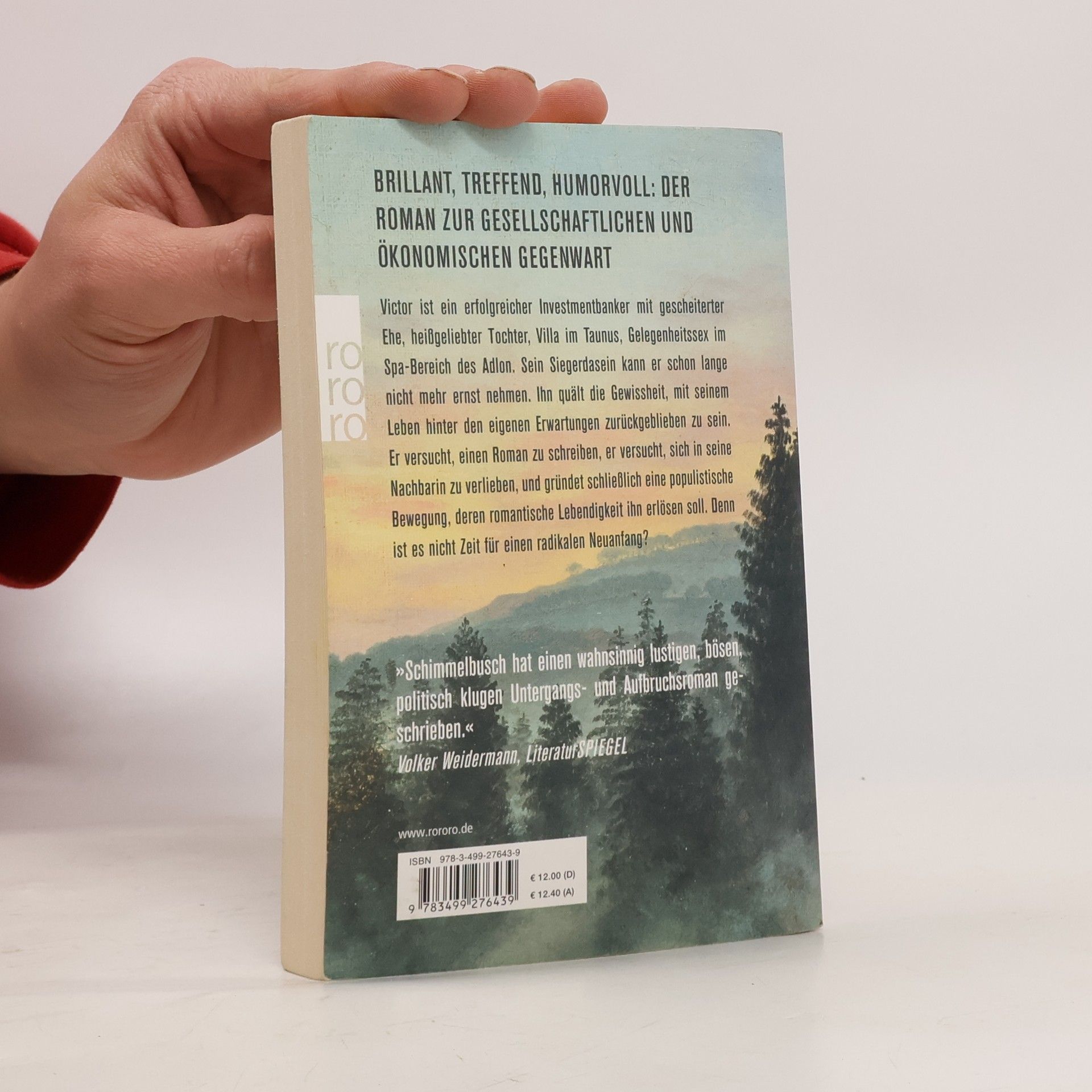 Böse, brillant, humorvoll ist der Spiegelbestseller «Hochdeutschland» der Roman zur politischen, gesellschaftlichen und ökonomischen Gegenwart und der Presseerfolg des Jahres. Victor ist ein erfolgreicher Investmentbanker mit gescheiterter Ehe, heißgeliebter Tochter, Villa im Taunus, Gelegenheitssex im Spa-Bereich des Adlon. Sein Siegerdasein kann er schon lange nicht mehr ernst nehmen. Ihn quält die Gewissheit, mit seinem Leben hinter den eigenen Erwartungen zurückgeblieben zu sein. Er versucht, einen Roman zu schreiben, er versucht, sich in seine Nachbarin zu verlieben, und gründet schließlich eine populistische Bewegung, deren romantische Lebendigkeit ihn erlösen soll. Denn ist es nicht Zeit für einen radikalen Neuanfang?
