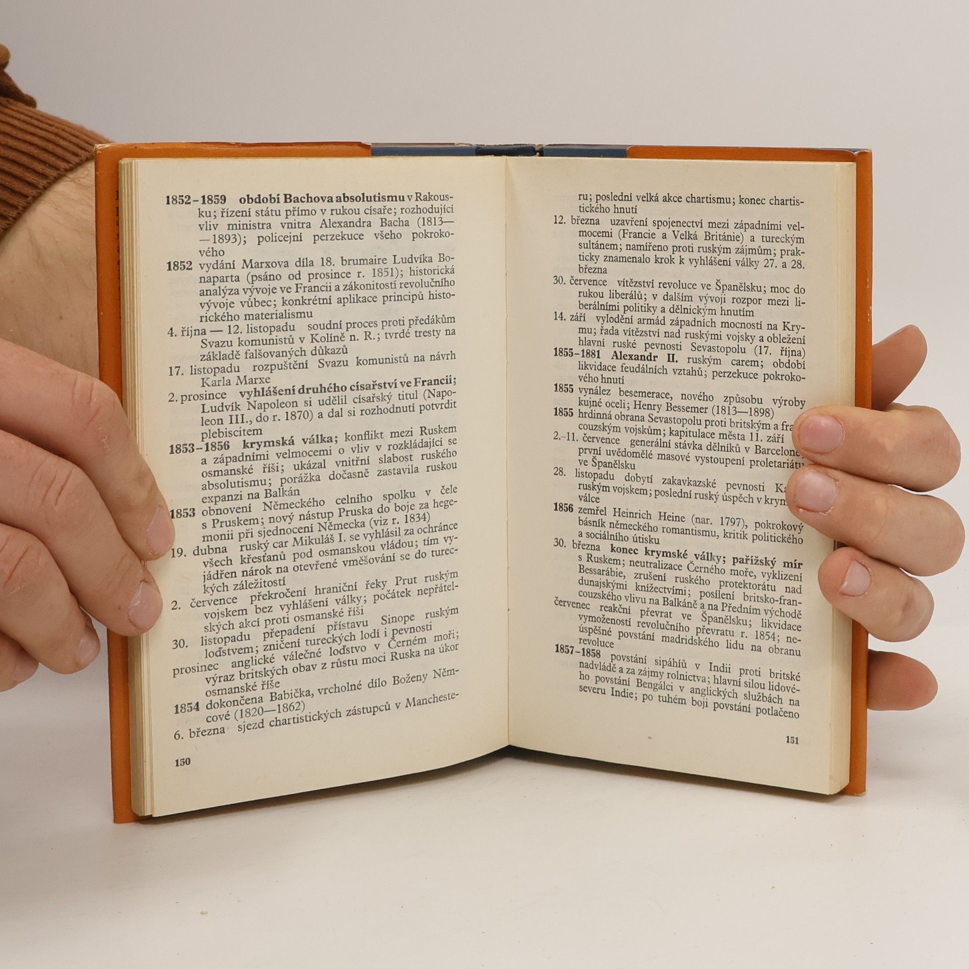 V chronologicky uspořádaných heslech zachycuje příručka nejzávažnější události evropských dějin od nejstarších dob až do r. 1945. Kromě politických dějů obsahuje také údaje z dějin kultury, vědy a techniky. Hesla doplňují synoptické tabulky, jež mají sloužit k lepší představě očasových vztazích jednotlivých historických událostí v evropském a částečně i mimoevropském vývoji. 23-082-77