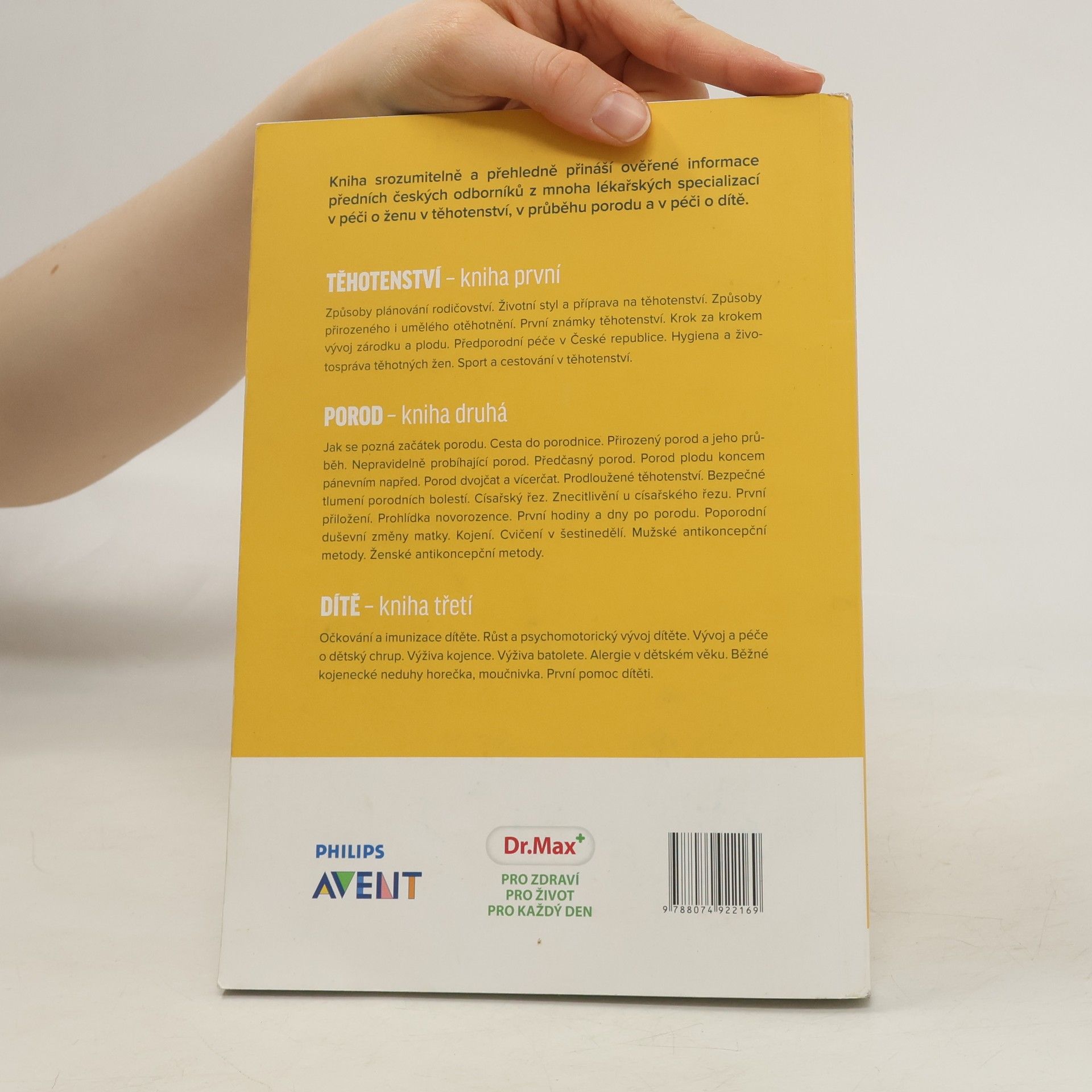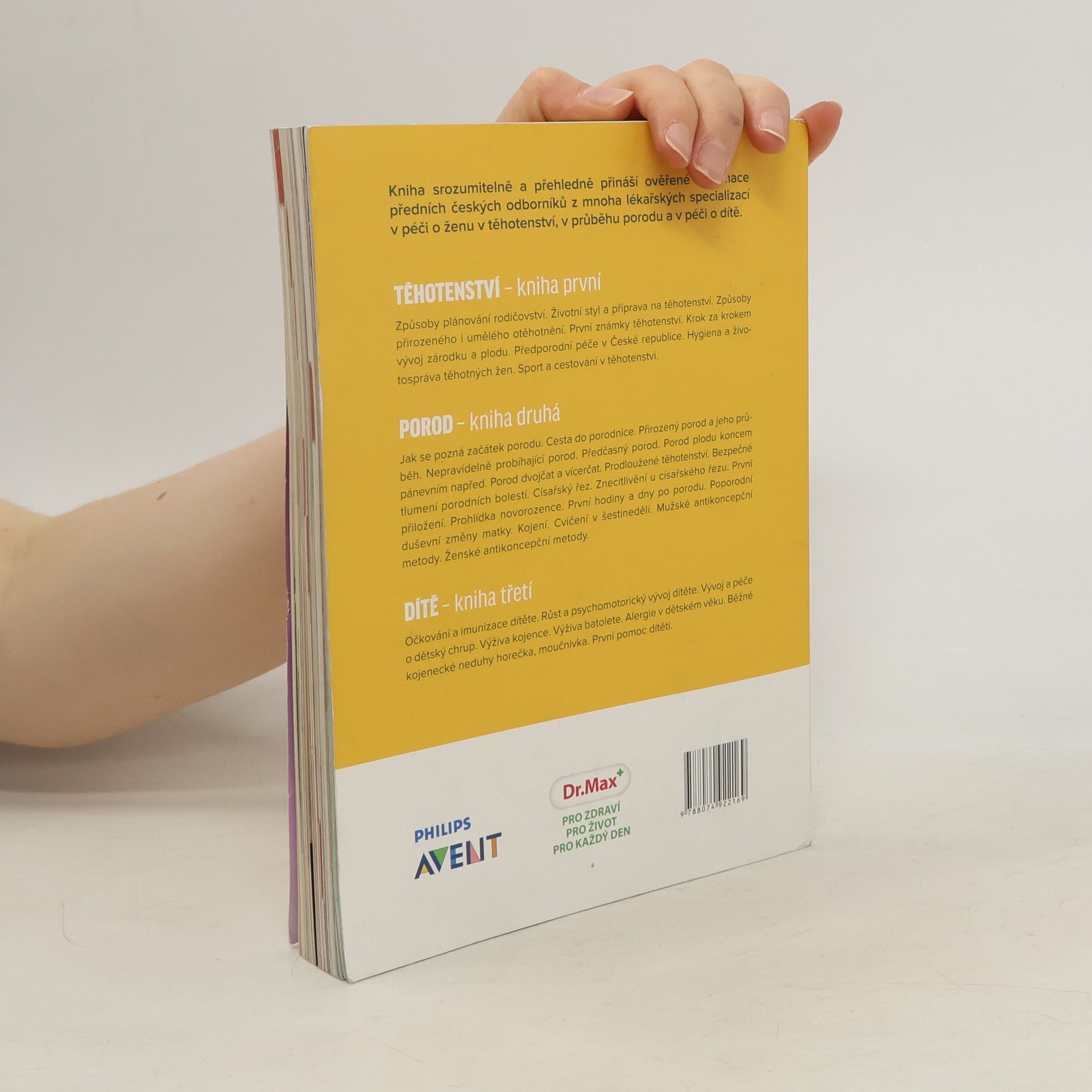 Kniha srozumitelně a přehledně přináší ověřené informace předních českých odborníků z mnoha lékařských oborů o těhotenství, porodu a péči o dítě. Témata podrobně rozpracována ve třech dílech, prodejných samostatně i jako triplet. V dílu 3. Dítě naleznete např. témata: Očkování a imunizace dítěte. Růst a psychomotorický vývoj dítěte. Vývoj a péče o dětský chrup. Výživa kojence. Výživa batolete. Alergie v dětském věku. Běžné kojenecké neduhy, horečka, moučnivka. První pomoc dítěti.
