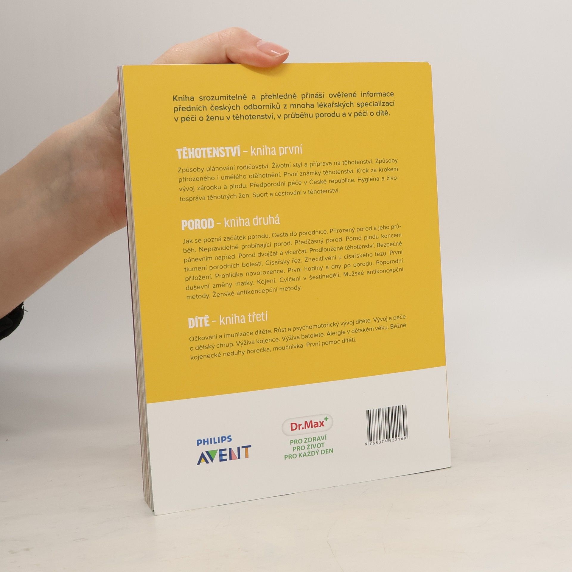 Kniha srozumitelně a přehledně přináší ověřené informace předních českých odborníků z mnoha lékařských oborů o těhotenství, porodu a péči o dítě. Témata podrobně rozpracována ve třech dílech, prodejných samostatně i jako triplet. V dílu 3. Dítě naleznete např. témata: Očkování a imunizace dítěte. Růst a psychomotorický vývoj dítěte. Vývoj a péče o dětský chrup. Výživa kojence. Výživa batolete. Alergie v dětském věku. Běžné kojenecké neduhy, horečka, moučnivka. První pomoc dítěti.