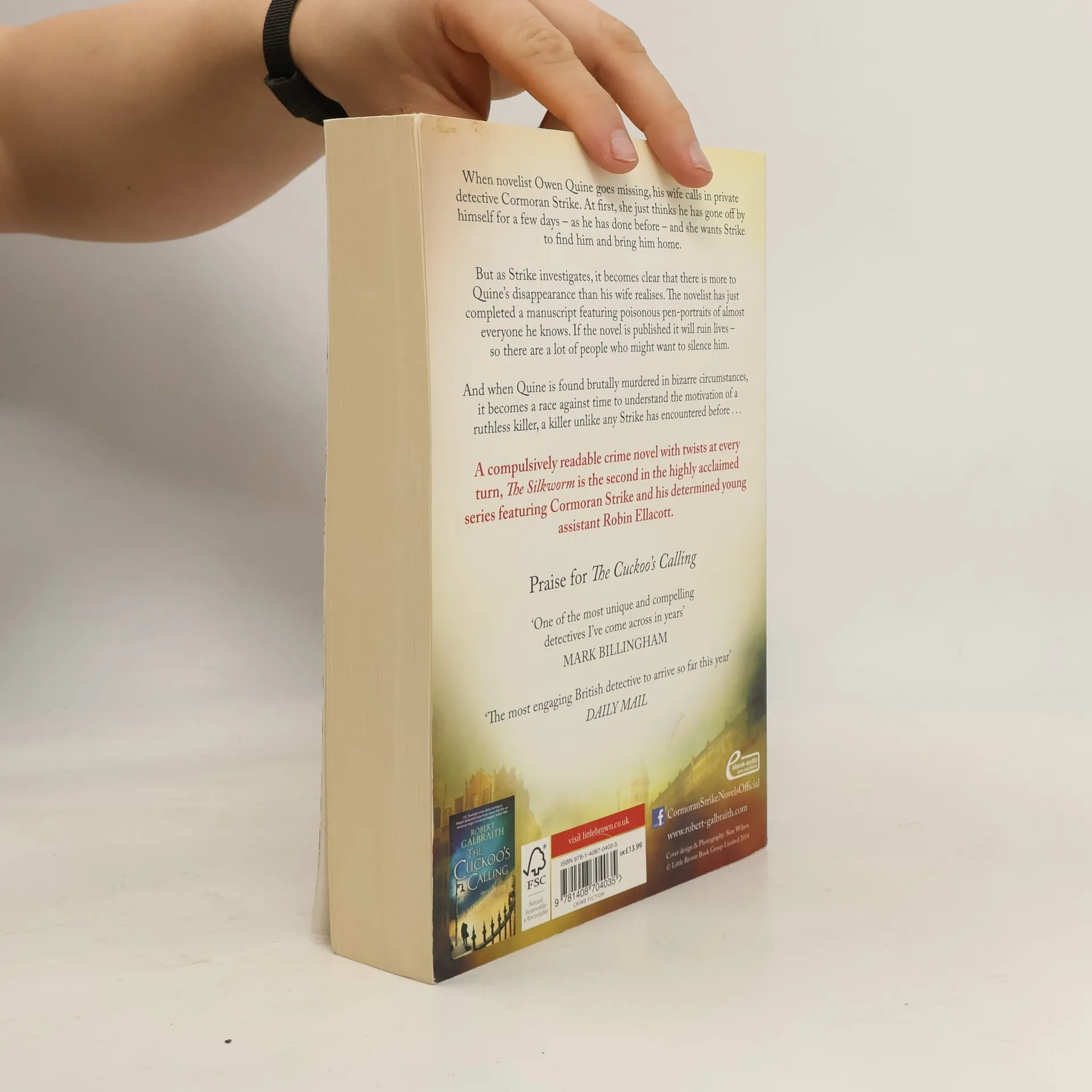 When novelist Owen Quine goes missing, his wife calls in private detective Cormoran Strike. At first, she just thinks he has gone off by himself for a few days - as he has done before - and she wants Strike to find him and bring him home. But as Strike investigates, it becomes clear that there is more to Quine's disappearance than his wife realises. The novelist has just completed a manuscript featuring poisonous pen-portraits of almost everyone he knows. If the novel were published it would ruin lives - so there are a lot of people who might want to silence him. And when Quine is found brutally murdered in bizarre circumstances, it becomes a race against time to understand the motivation of a ruthless killer, a killer unlike any he has encountered before . . . A compulsively readable crime novel with twists at every turn, The Silkworm is the second in the highly acclaimed series featuring Cormoran Strike and his determined young assistant Robin Ellacott.