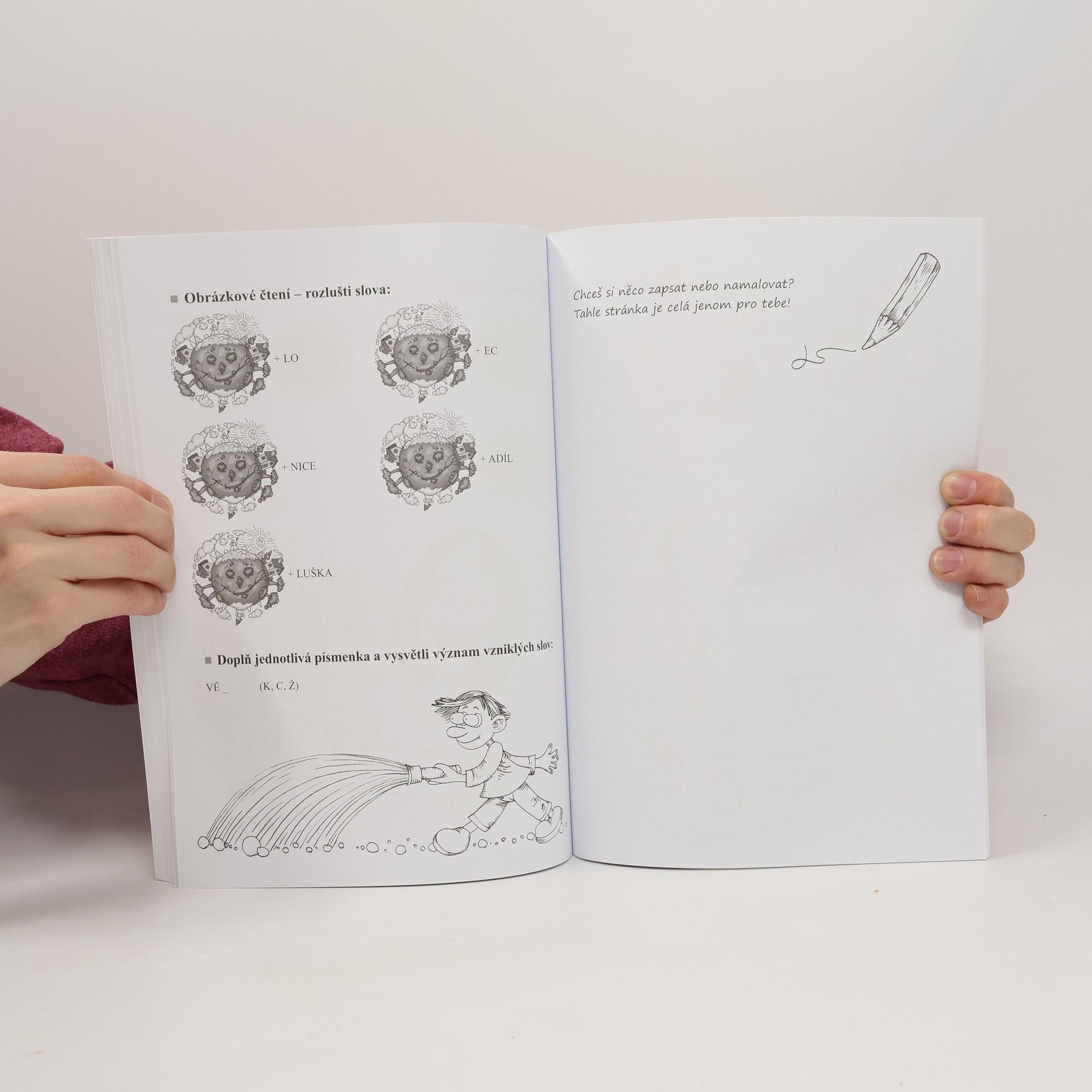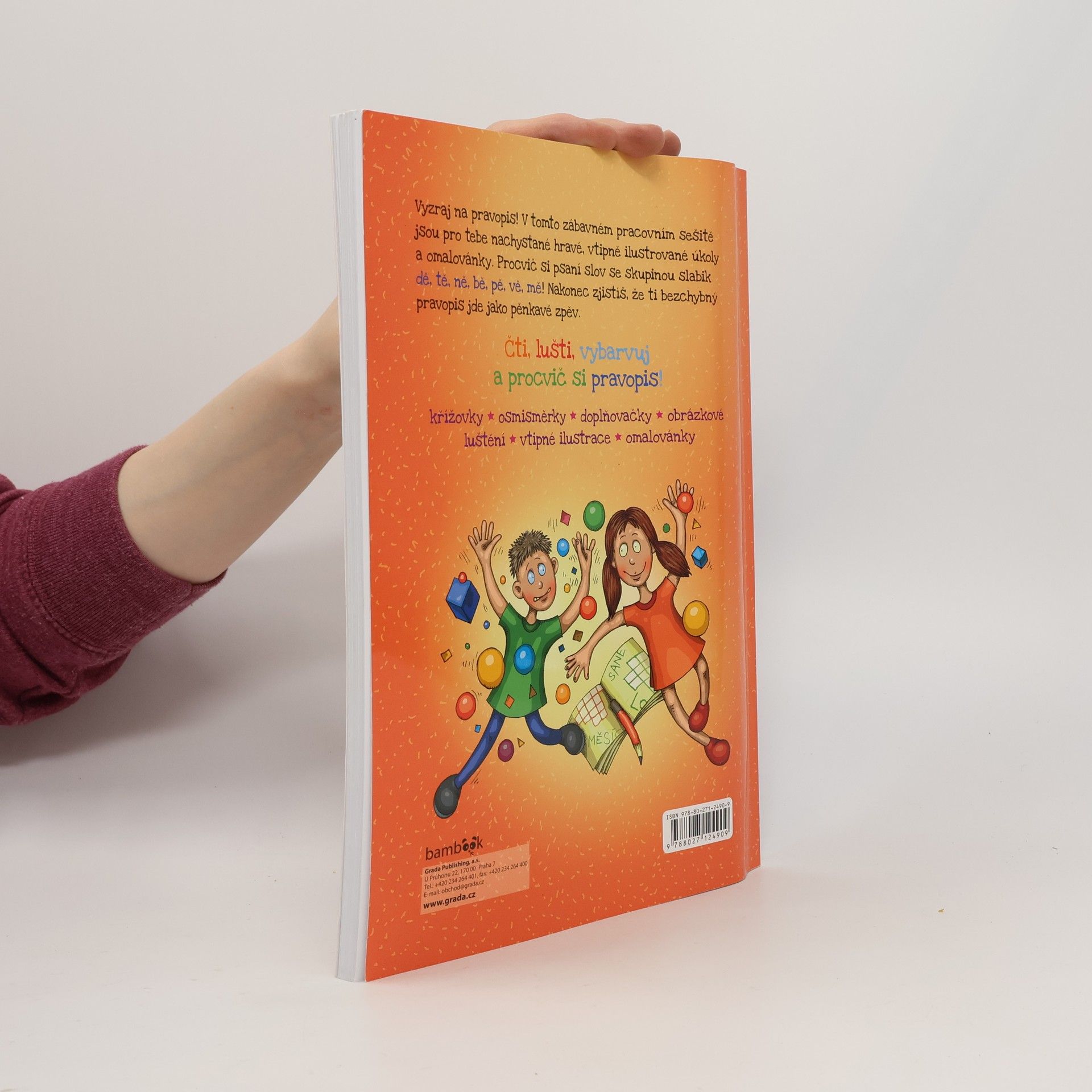 Čti, lušti, vybarvuj a měj na paměti, že psát pravopisně správně není žádná oběť. Objev s námi, že křížovky nejsou nudné luštěniny. S osmisměrkami se zasměješ a navrch tě čeká pěkná dávka omalovánek. Nakonec zjistíš, že psaní slov se slabikami dě, tě, ně, bě, pě, vě, mě ti jde jako pěnkavě zpěv. Bohatě ilustrovaný pracovní sešit obsahuje pravopisné doplňovačky, křížovky, osmisměrky a množství veselých obrázků k vymalování.