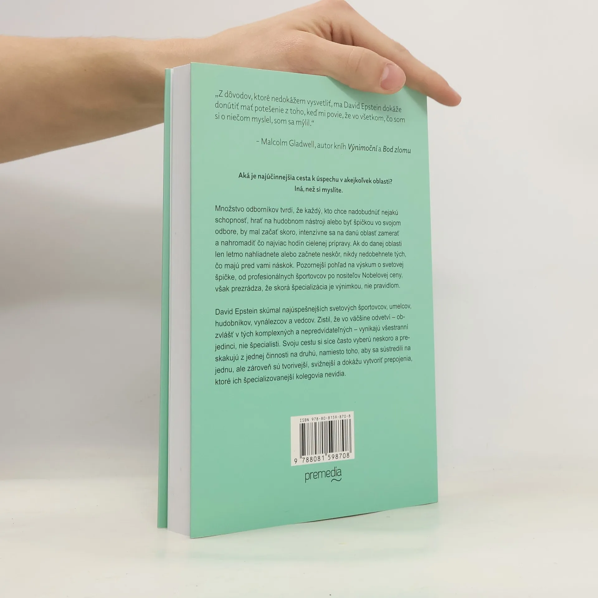 David Epstein, autor prevratnej knihy Športový gén, skúmal pri písaní svojej novej knihy najúspešnejších svetových športovcov, umelcov, hudobníkov, vynálezcov a vedcov. Zistil, že vo väčšine odvetví – obzvlášť v tých komplexných a nepredvídateľných – vynikajú všestranní jedinci, nie špecialisti. Svoju cestu si síce často vyberú neskoro a preskakujú z jednej činnosti na druhú, namiesto toho, aby sa sústredili na jednu, ale zároveň sú tvorivejší, svižnejší a dokážu vytvoriť prepojenia, ktoré ich špecializovanejší kolegovia nevidia. Autor zisťuje, že nezvládnutie skúšky je najlepší spôsob učenia sa. Tí, čo často menia prácu, majú nakoniec kariéru, ktorá ich najviac napĺňa. Vynálezcovia s najväčším vplyvom prechádzajú z jednej oblasti do druhej namiesto toho, aby prehlbovali svoje vedomosti v jedinom odbore. V čase, keď sa odborníci čoraz viac izolujú, a počítače získavajú schopnosti kedysi vyhradené úzko špecializovaným ľuďom, sa bude stále viac dariť tým, čo dokážu myslieť širokospektrálne a využiť rozmanité skúsenosti.