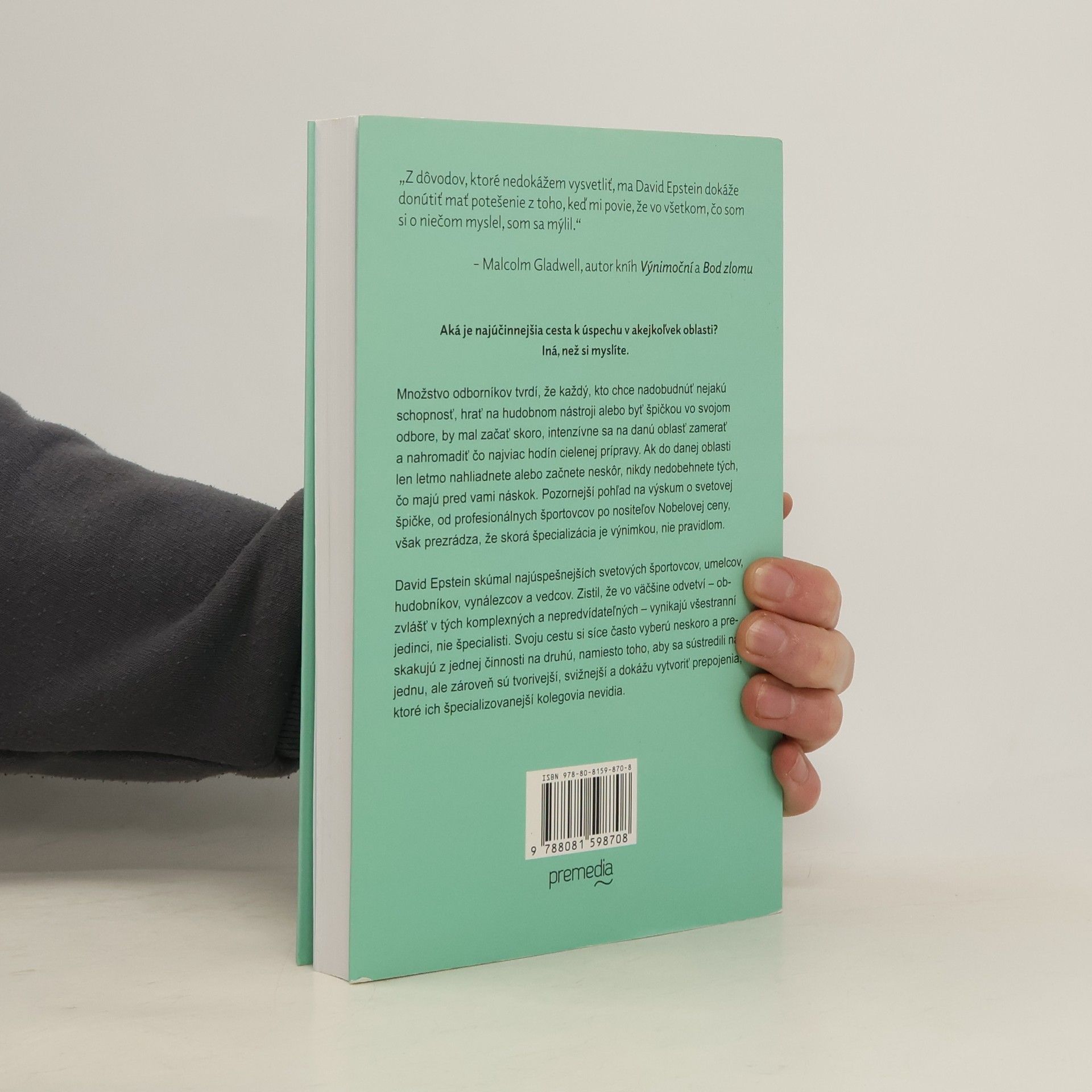 David Epstein, autor prevratnej knihy Športový gén, skúmal pri písaní svojej novej knihy najúspešnejších svetových športovcov, umelcov, hudobníkov, vynálezcov a vedcov. Zistil, že vo väčšine odvetví – obzvlášť v tých komplexných a nepredvídateľných – vynikajú všestranní jedinci, nie špecialisti. Svoju cestu si síce často vyberú neskoro a preskakujú z jednej činnosti na druhú, namiesto toho, aby sa sústredili na jednu, ale zároveň sú tvorivejší, svižnejší a dokážu vytvoriť prepojenia, ktoré ich špecializovanejší kolegovia nevidia. Autor zisťuje, že nezvládnutie skúšky je najlepší spôsob učenia sa. Tí, čo často menia prácu, majú nakoniec kariéru, ktorá ich najviac napĺňa. Vynálezcovia s najväčším vplyvom prechádzajú z jednej oblasti do druhej namiesto toho, aby prehlbovali svoje vedomosti v jedinom odbore. V čase, keď sa odborníci čoraz viac izolujú, a počítače získavajú schopnosti kedysi vyhradené úzko špecializovaným ľuďom, sa bude stále viac dariť tým, čo dokážu myslieť širokospektrálne a využiť rozmanité skúsenosti.