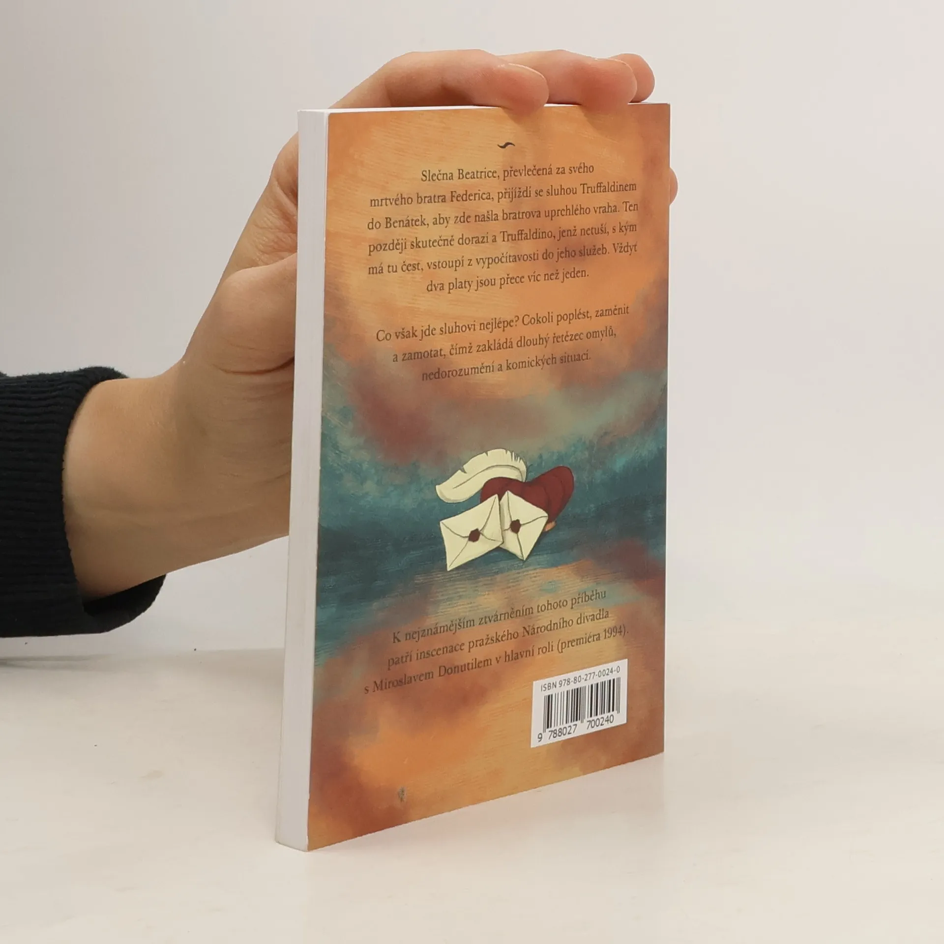 Divadelní hra Sluha dvou pánů je klasické italské dílo žánru commedia dell'arte z roku 1745. Slečna Beatrice, převlečená za svého mrtvého bratra Federica, přijíždí se sluhou Truffaldinem do Benátek, aby zde našla bratrova uprchlého vraha. Ten později skutečně dorazí a Truffaldino, jenž netuší, s kým má tu čest, vstoupí z vypočítavosti i do jeho služeb. Vždyť dva platy jsou přece víc než jeden. Sluha ovšem nejlépe ze všeho umí poplést, zaměnit a pomotat jakýkoli úkol, čímž zakládá dlouhý řetězec omylů, nedorozumění a komických situací. K nejznámějším ztvárněním tohoto příběhu patří inscenace pražského Národního divadla s Miroslavem Donutilem v hlavní roli. (Premiéra 1994.) Toto provedení bylo i zaznamenáno pro televizní vysílání.