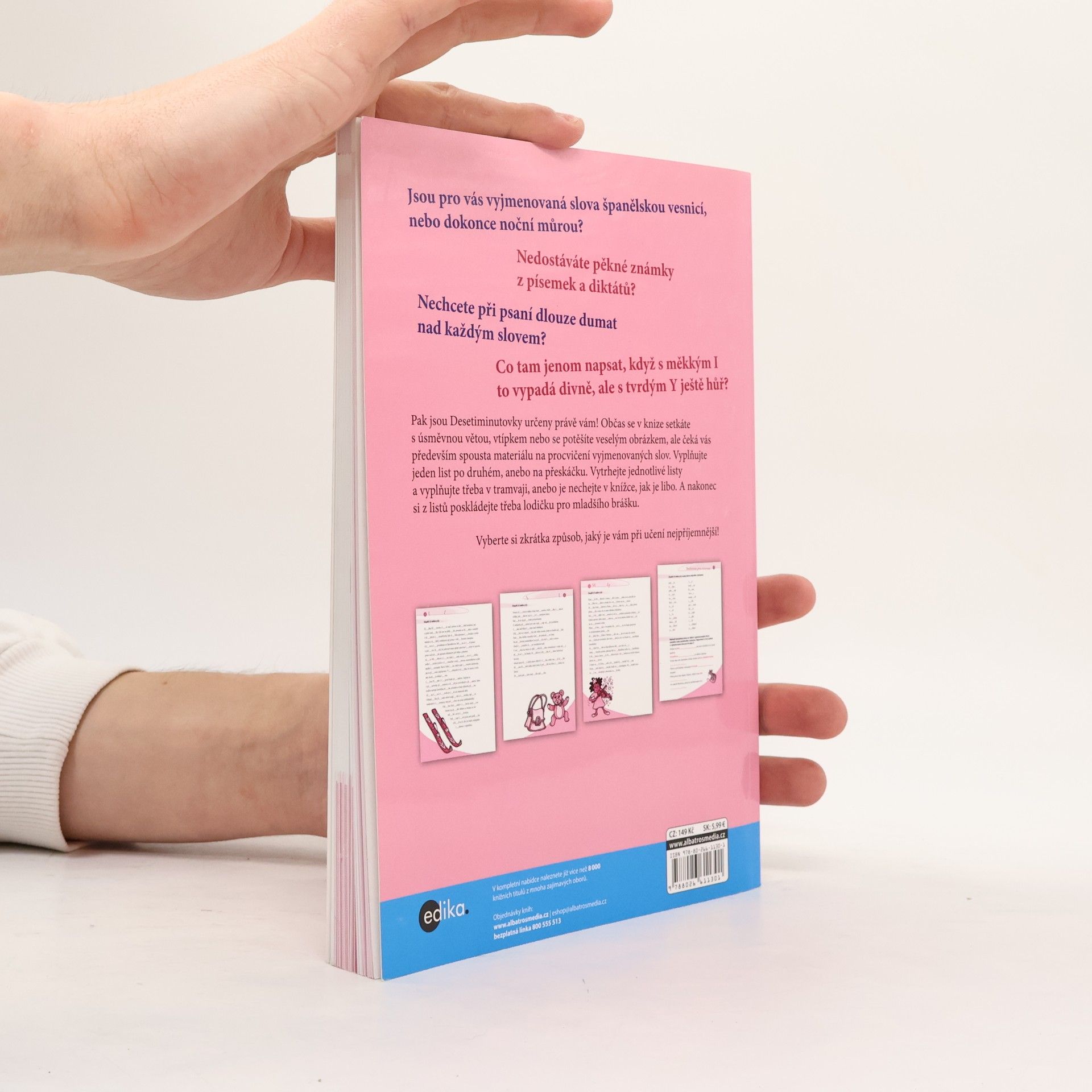 Jsou pro vás vyjmenovaná slova španělskou vesnicí, nebo dokonce noční můrou? Nedostáváte pěkné známky z písemek a diktátů? Nechcete při psaní dlouze dumat nad každým slovem? Co tam jenom napsat, když s měkkým I to vypadá divně, ale s tvrdým Y ještě hůř? Pak jsou Desetiminutovky určeny právě vám! Občas se v knize setkáte s úsměvnou větou, vtípkem nebo se potěšíte veselým obrázkem, ale čeká vás především spousta materiálu na procvičení vyjmenovaných slov. Vyplňujte jeden list po druhém, anebo na přeskáčku. Vytrhejte jednotlivé listy a vyplňujte třeba v tramvaji, anebo je nechejte v knížce, jak je libo. A nakonec si z listů poskládejte třeba lodičku pro mladšího brášku. Vyberte si zkrátka způsob, jaký je vám při učení nejpříjemnější!