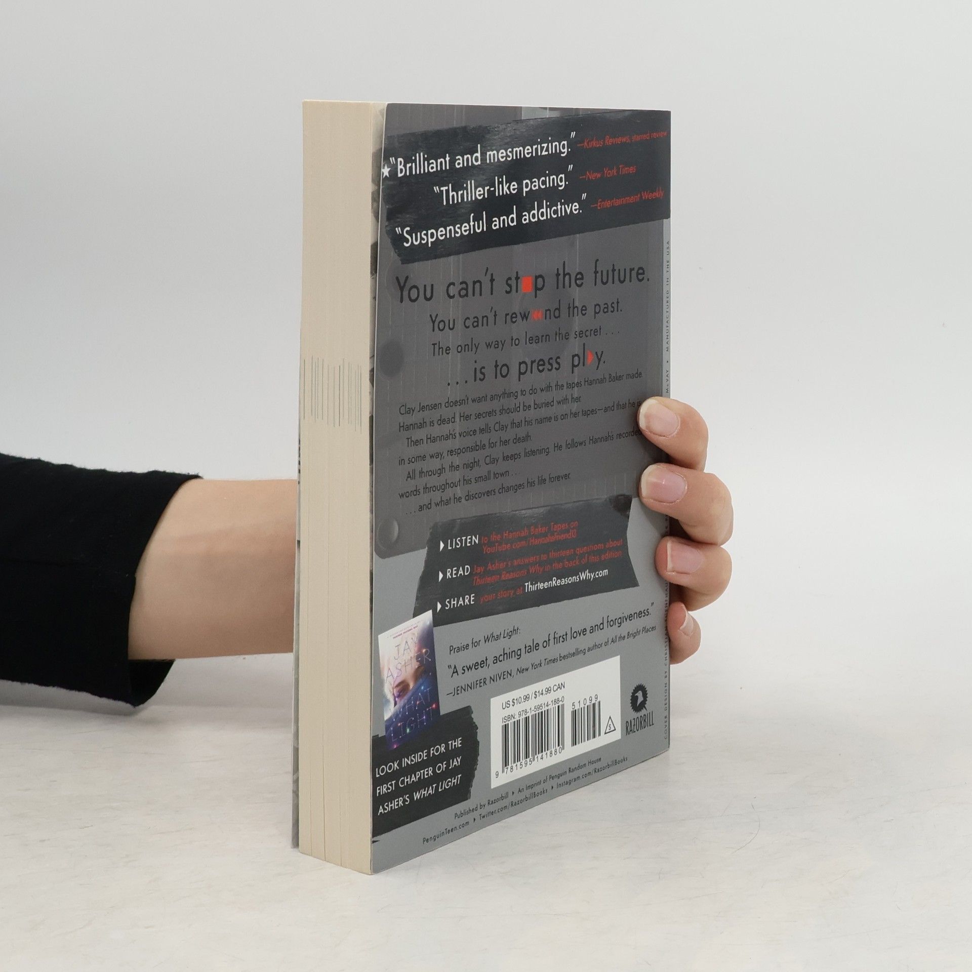 THE #1 NEW YORK TIMES AND INTERNATIONAL BESTSELLER **THE BOOK THAT STARTED IT ALL, NOW A NETFLIX ORIGINAL SERIES** “Eerie, beautiful, and devastating.” —Chicago Tribune “A stealthy hit with staying power. . . . thriller-like pacing.” —The New York Times “Thirteen Reasons Why will leave you with chills long after you have finished reading.” —Amber Gibson, NPR’s “All Things Considered” You can’t stop the future. You can’t rewind the past. The only way to learn the secret . . . is to press play. Clay Jensen returns home from school to find a strange package with his name on it lying on his porch. Inside he discovers several cassette tapes recorded by Hannah Baker—his classmate and crush—who committed suicide two weeks earlier. Hannah's voice tells him that there are thirteen reasons why she decided to end her life. Clay is one of them. If he listens, he'll find out why. Clay spends the night crisscrossing his town with Hannah as his guide. He becomes a firsthand witness to Hannah's pain, and as he follows Hannah’s recorded words throughout his town, what he discovers changes his life forever. Need to talk? Call 1-800-273-TALK (8255) anytime if you are in the United States. It’s free and confidential. Find more resources at 13reasonswhy.info. Find out how you can help someone in crisis at bethe1to.com.