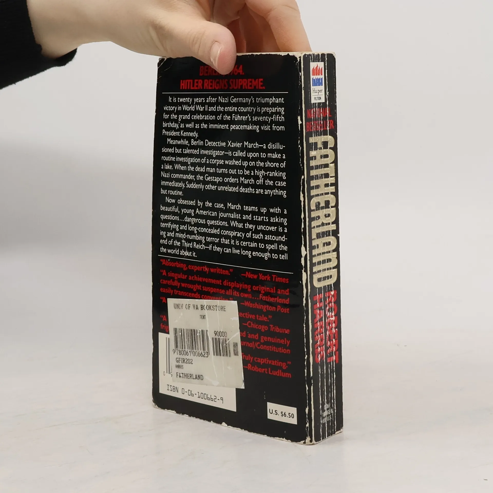 April 1964.The naked body of an old man floats in a lake on the outskirts of Berlin. In one week it will be Adolf Hitler’s 75th birthday. A terrible conspiracy is starting to unravel…What if Hitler had won?Fatherland is set in an alternative world where Hitler has won the Second World War. It is April 1964 and one week before Hitler's 75th birthday. Xavier March, a detective of the Kriminalpolizei, is called out to investigate the discovery of a dead body in a lake near Berlin's most prestigious suburb.As March discovers the identity of the body, he uncovers signs of a conspiracy that could go to the very top of the German Reich. And, with the Gestapo just one step behind, March, together with an American journalist, is caught up in a race to discover and reveal the truth -- a truth that has already killed, a truth that could topple governments, a truth that will change history.