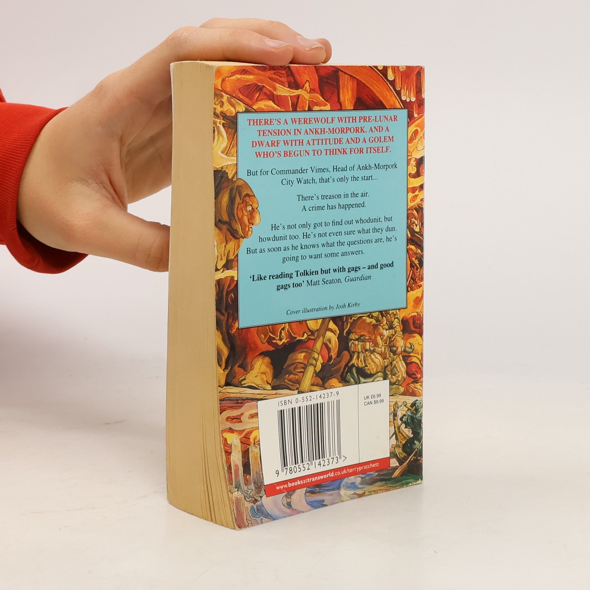 There's a werewolf with pre-lunar tension in Ankh-Morpork and a dwarf with attitude and a golem who's begun to think for itself. But for Commander Vimes, Head of Ankh-Morpork City Watch, that's only the start... There's treason in the air. A crime has happened. He's not only got to find out whodunit, but howdunit too. He's not even sure what they dun. But as soon as he knows what the questions are, he's going to want some answers.