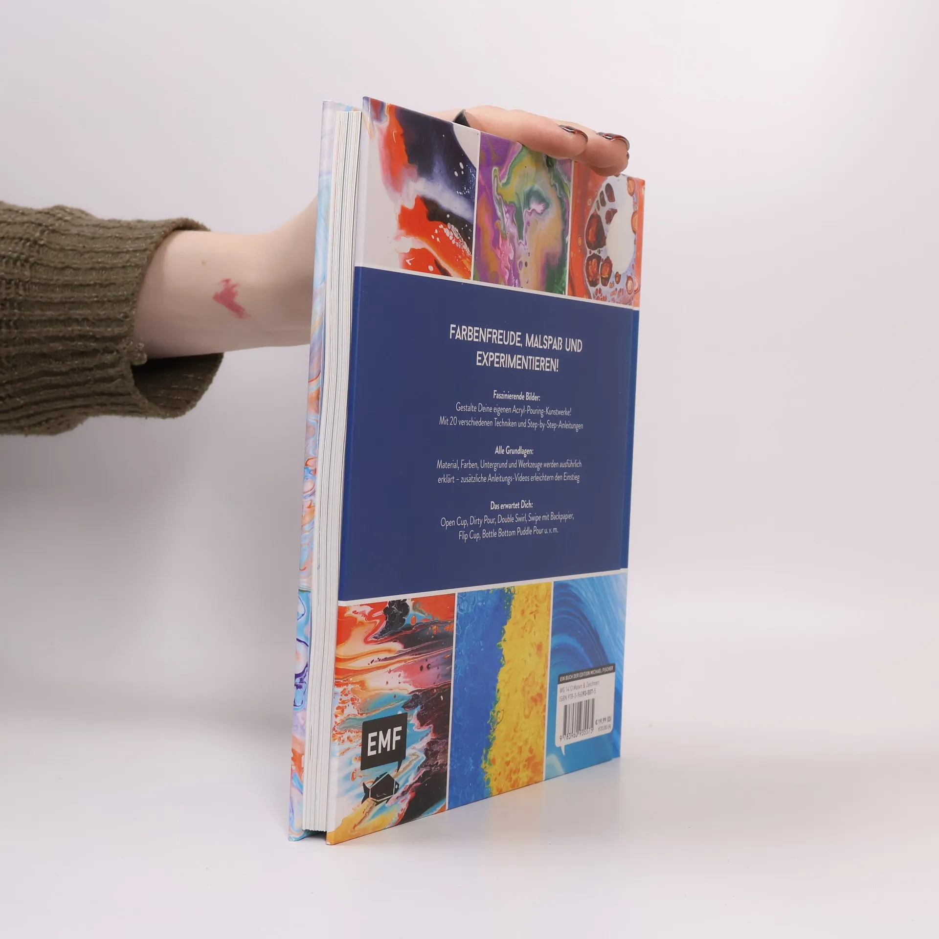 Experimentierfreude pur! Acryl Fließtechnik oder auch Acryl Pouring ist der neuste Trend in der Acrylmalerei. Der spontane Moment des Mediums wird hierbei besonders gefeiert. So entstehen mit Hilfe verschiedener Techniken ausdrucksstarke Kunstwerke. Egal ob Open Cup, Dirty Pour, Double Swirl, Swipe mit Backpapier oder Flip Cup – mit den Schritt-für-Schritt-Anleitungen für die verschiedenen Techniken und zusätzlichem Videomaterial vom Pouring-Profi Lars Runge ist das Gelingen der farbenfrohen und abstrakten Gießbilder garantiert. Beim Pouring kommt alles zusammen: Farbenfreude, Malspaß, Experimentieren – Kreativität ohne Grenzen!
