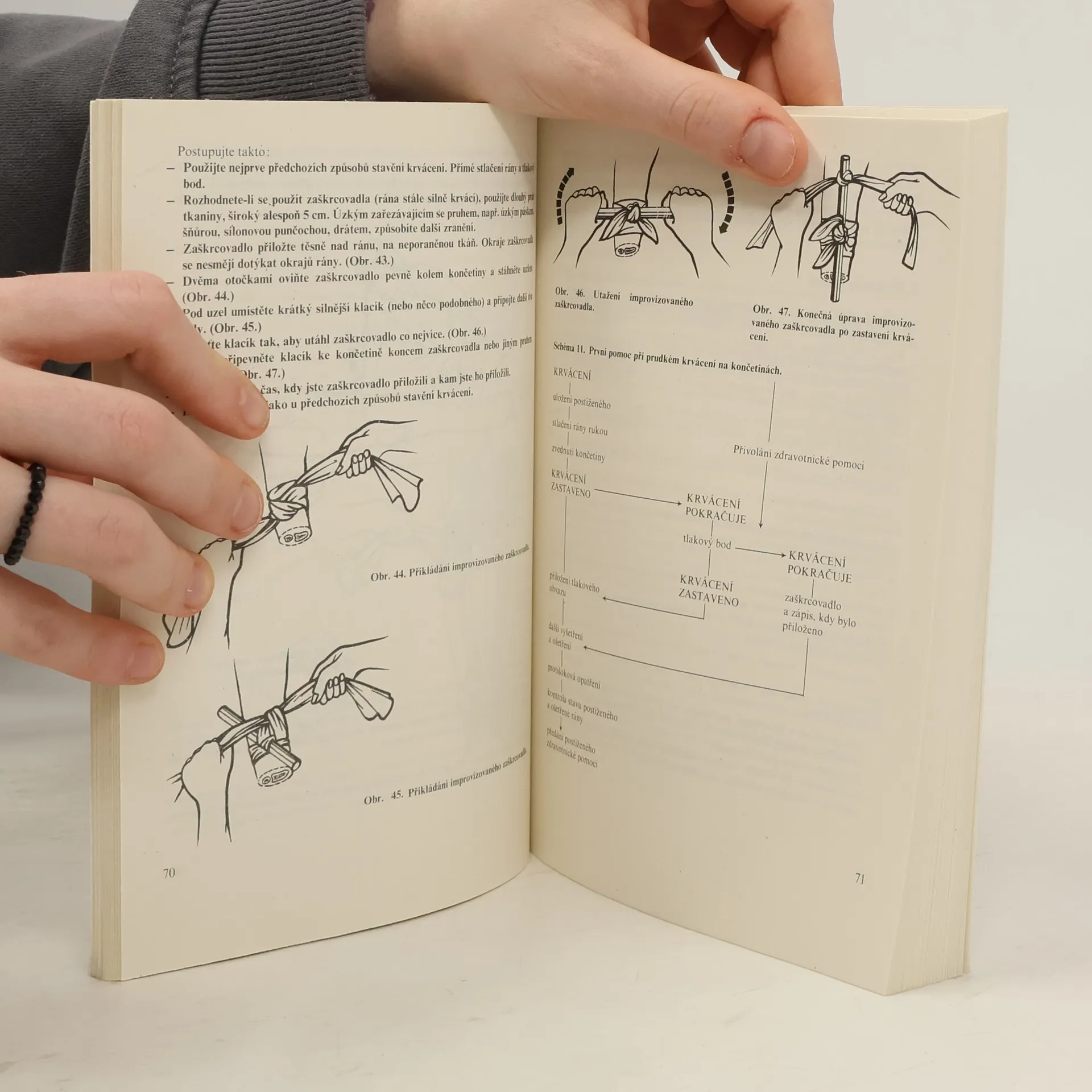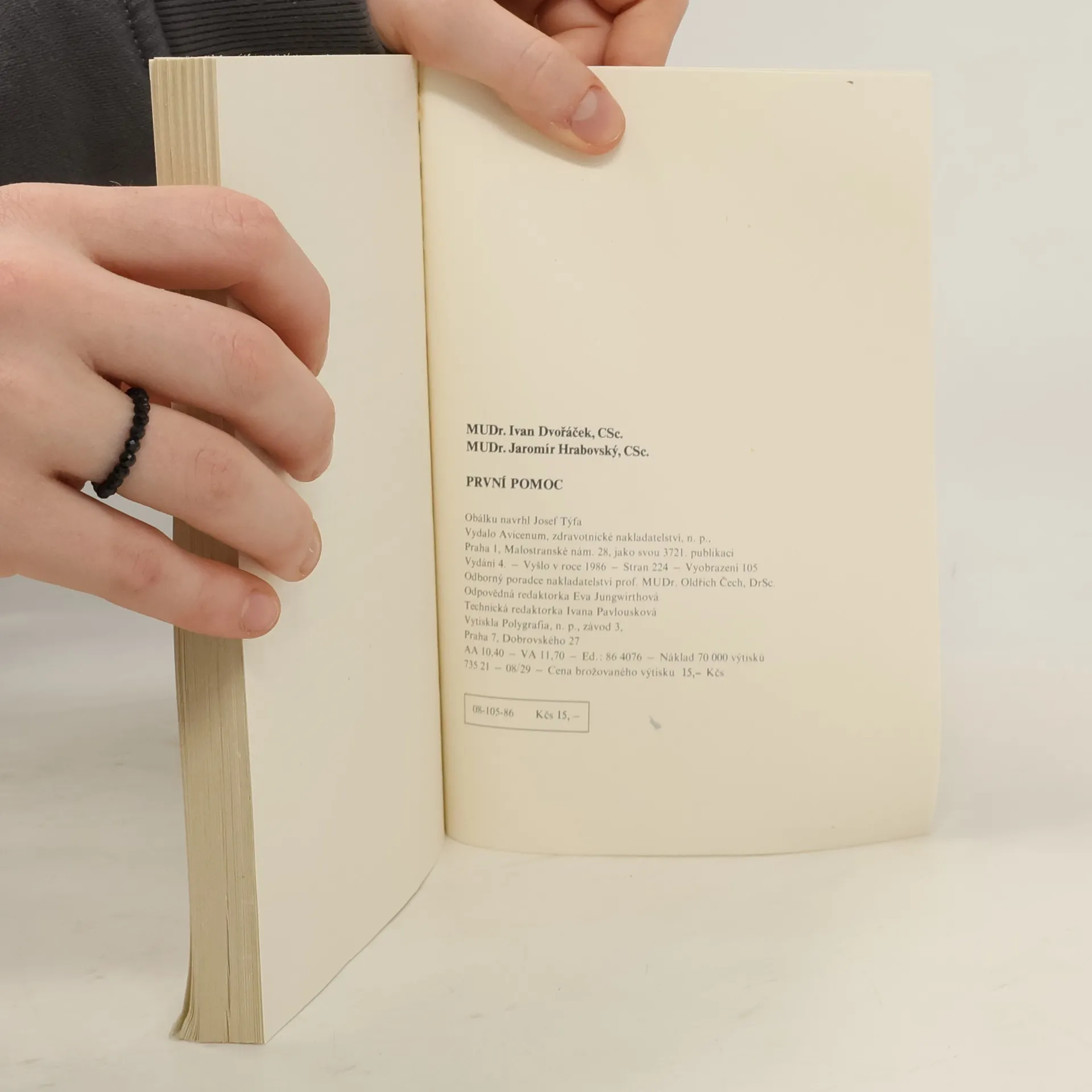 Učebnice pro zdravotnické školy. Příručka seznamuje s nejdůležitějšími postupy při poskytování první pomoci, zejména při stavech bezprostředního ohrožení života. Po výkladu o struktuře a základních funkcích organismu informuje o provádění neodkladnéresuscitace, o první pomoci v případě bezvědomí, šoku, krvácení, závažných i menších poranění, akutních otravách apod.