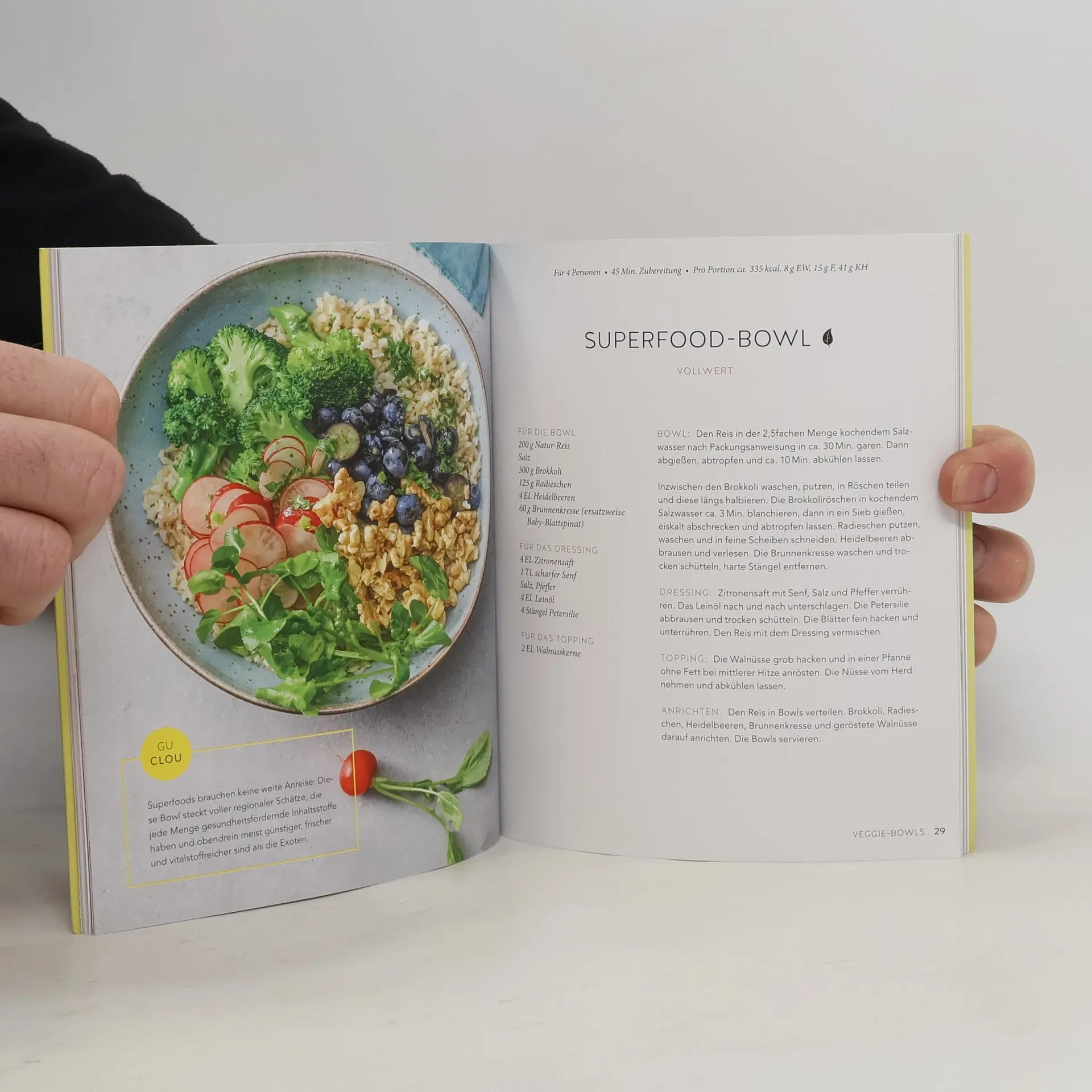 Bowls - Die Balance aus gesunden, ausgewogenen Zutaten und purem Genuss gelingt bei den Schüsselgerichten mit der fröhlich-bunten Aura perfekt! Schnell sind die formschönen Schalen mit allem gefüllt, was der Körper braucht: Getreide und Superfoods, Gemüse und Salat, knackige Nüsse, wertvolles Eiweiß und würzige Dressings. Mit Stepfotos, Tipps für Toppings, einer Warenkunde für passende Bowls und vielen schnellen Rezepten macht der Küchenratgeber Happy Buddha-Bowls Anfängern wie Fans mächtig Appetit auf das ausbalancierte Trend-Food. Vom Frühstück bis Hauptgericht zaubern Superfood-Bowl mit Brunnenkresse, Avocado-Kefir- oder Süßkartoffel-Bowl schon bei ihrem farbenfrohen Anblick ein Lächeln auf die Lippen – göttlich!