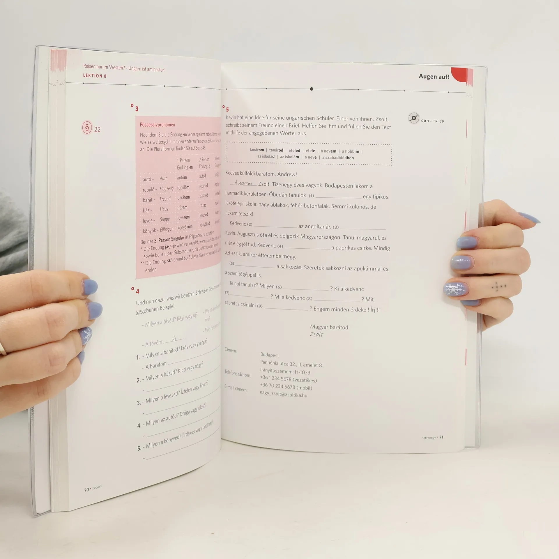 Mit Power fit in Ungarisch – bis Niveau A2 Ihr Ziel: Ungarisch sprechen, verstehen und schreiben können – schnell und effektiv! Unsere Methode: Sie lernen in kleinen Portionen und werden in abwechslungsreichen Übungen aktiv gefordert. Zwischendurch testen Sie Ihr Wissen mit Online-Tests . Wenn Sie wollen, können Sie mit diesem Intensivkurs nach vier Wochen schon richtig mitreden. Ihr Vorteil: Alles, was Sie zum Lernen brauchen, finden Sie in diesem Kurs. Kompakte Erklärungen , zahlreiche Übungen zum Sprechen, Hören und Schreiben und authentische Hörtexte führen Sie schnell zum Ziel. Für Anfänger und Wiedereinsteiger (A1-A2)