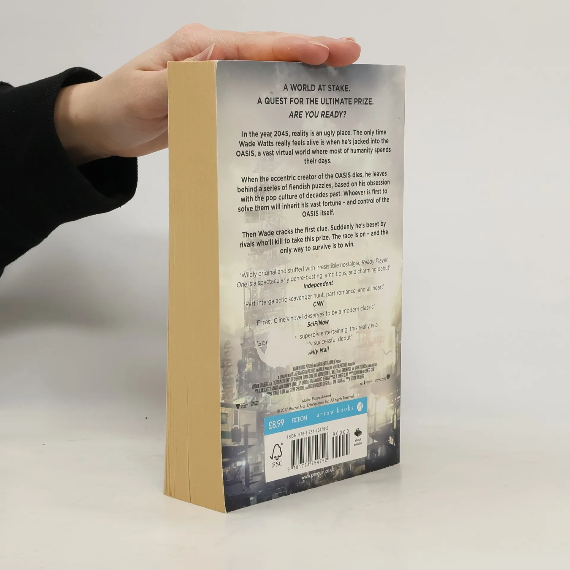 NOW A MAJOR MOTION PICTURE DIRECTED BY STEVEN SPIELBERG **A world at stake. A quest for the ultimate prize. Are you ready?** In the year 2045, reality is an ugly place. The only time Wade Watts really feels alive is when he's jacked into the OASIS, a vast virtual world where most of humanity spends their days. When the eccentric creator of the OASIS dies, he leaves behind a series of fiendish puzzles, based on his obsession with the pop culture of decades past. Whoever is first to solve them will inherit his vast fortune - and control of the OASIS itself. Then Wade cracks the first clue. Suddenly he's beset by rivals who'll kill to take this prize. The race is on - and the only way to survive is to win. 'Wildly original and stuffed with irresistible nostalgia, Ready Player One is a spectacularly genre-busting, ambitious, and charming debut' Independent 'Part intergalactic scavenger hunt, part romance, and all heart' CNN 'Ernest Cline's novel deserves to be a modern classic' SciFiNow 'Gorgeously geeky, superbly entertaining, this really is a spectacularly successful debut' Daily Mail