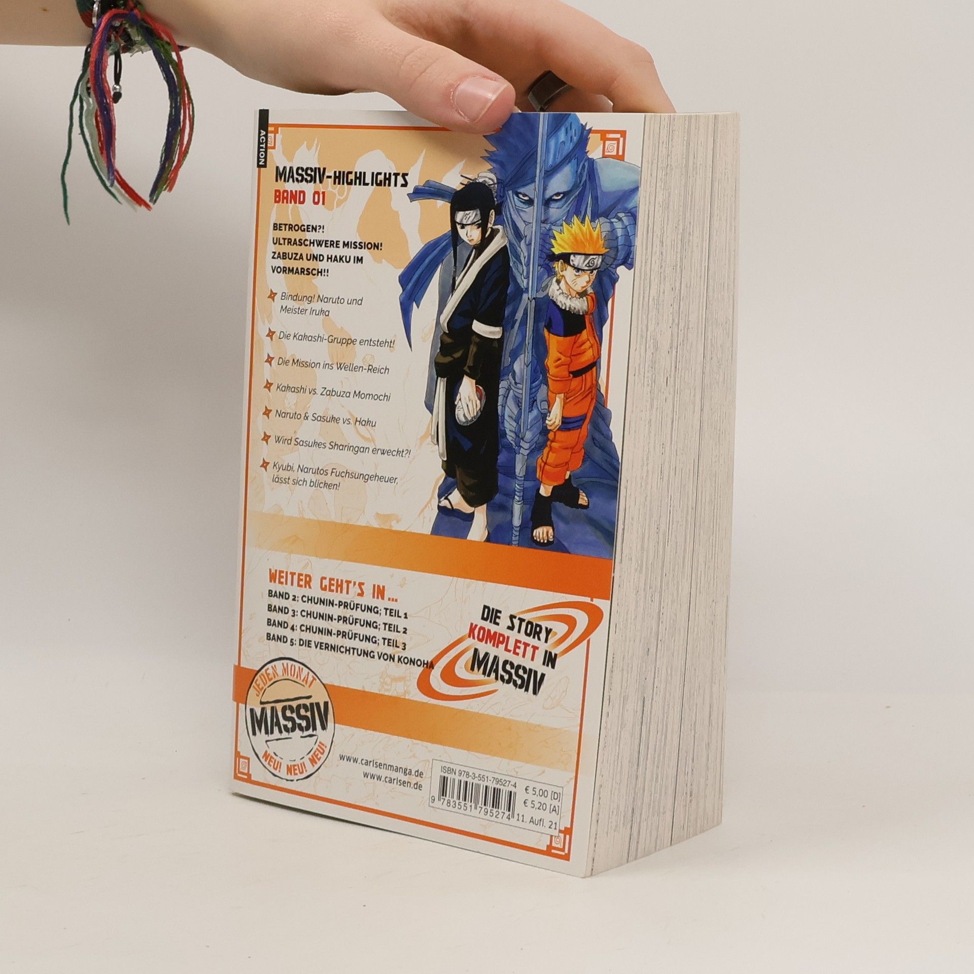 Erlebe atemberaubende Abenteuer und Ninja-Action mit NARUTO! Jetzt als tolle Sammelbandedition mit insgesamt 24 Bänden im größeren Format und neuen Covermotiven!  Naruto ist ein berüchtigter Tunichtgut in seinem Dorf, das fast ausschließlich aus Ninja besteht. Er liebt Nudelsuppe und spielt anderen gern Streiche. So ist es kein Wunder, dass er nicht gerade beliebt ist. Doch gerade deshalb will er der beste Ninja seines Dorfes werden. Zu diesem Zweck gehen er und seine Mitschüler Sasuke und Sakura beim großen Meister Kakashi in die Lehre... Band 1 der Naruto-Massiv Reihe enthält die Kapitel 1 - 33.  Für Fans von One Piece, My Hero Academia, Demon Slayer, Jujutsu Kaisen, Dragon Ball, Dr. Stone und Fairy Tail! Massiv-Highlights in Band 1: - Bindung! Naruto und Meister Iruka - Die Kakashi-Gruppe entsteht! - Die Mission ins Wellenreich - Kakashi vs. Zabuza Momochi - Naruto & Sasuke vs. Haku - Wird Sasukes Sharingan erweckt?! - Kyubi, Narutos Fuchsungeheuer, lässt sich blicken!