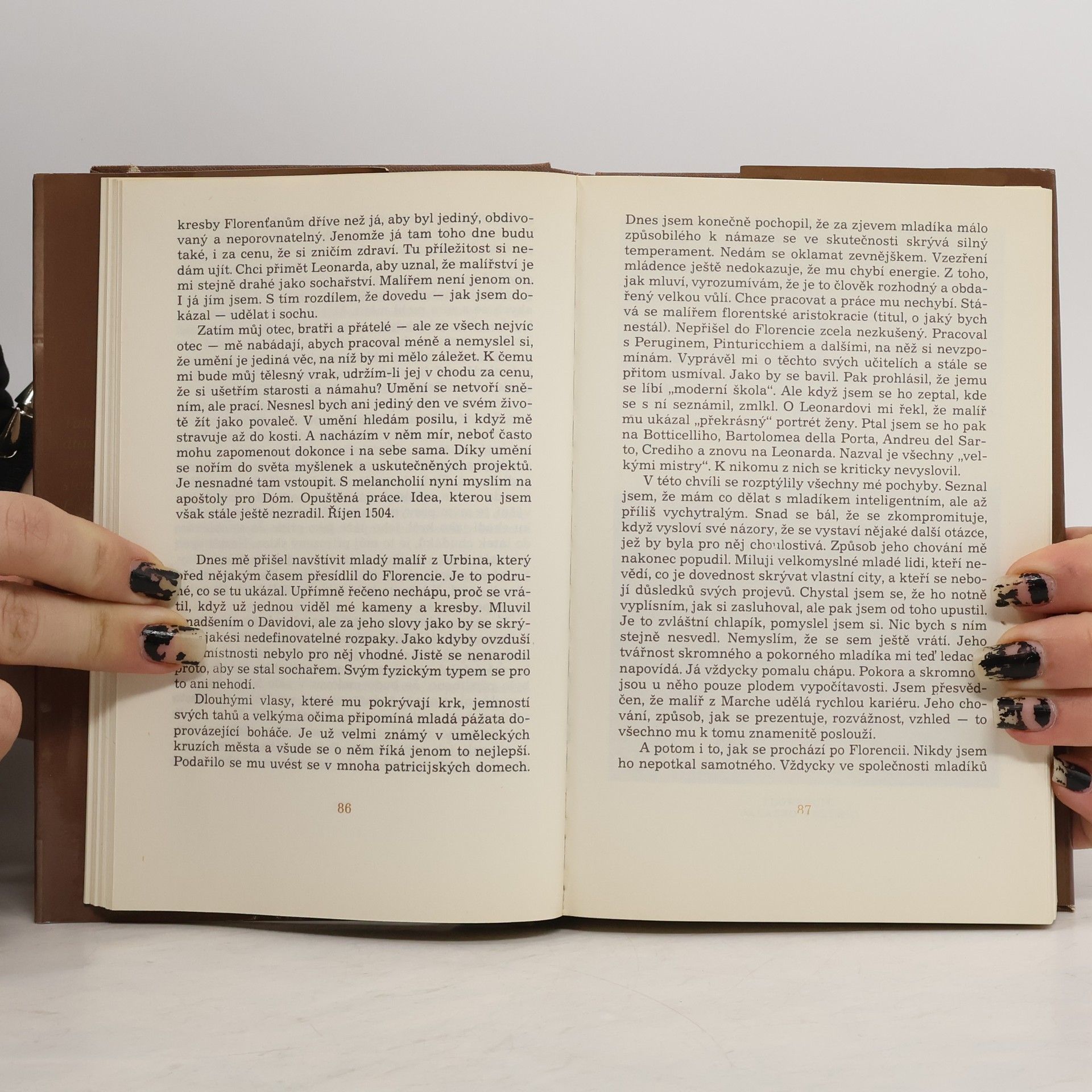 Jedná se o fiktivní deník, který Michelangelo nikdy nenapsal. Nejedná se také však o pouhý životopis či zbeletrozovaný katalog umělcových děl. Autor zvolil formu, která stojí někde uprostřed mezi literaturou faktu a románem. Setkáme se zde také s originálním výkladem řady psychologickýchmomentů -např. Michelangelova vztahu k Leonardovi da Vinci, Raffaelovi nebo Juliu II. Poznáme umělcovy povahové rysy včetně jeho tzv. podivínství a bláznoství. I děje načisto vnější , jako jsou mocenské zápasy jednotlivých papežů, intriky na jejich dvoře, politické zájmy Medicejských a jejich odpůrců republikánů a jiné dobové kulisy, dostávají dík autorově deníkově metodě zcela zvláštní ladění.