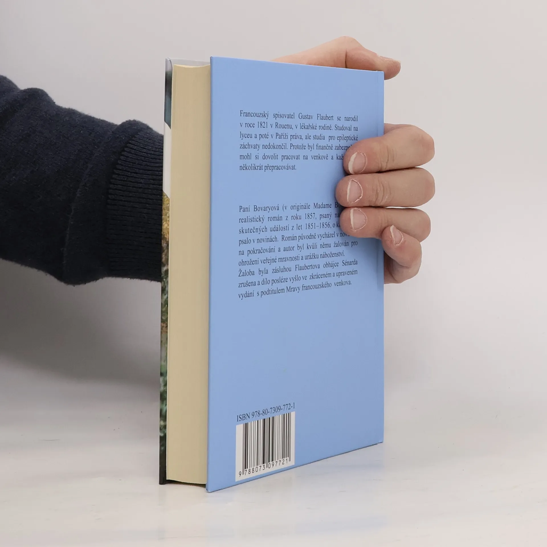 Flaubertovi se podařilo hluboce psychologicky prokreslit příběh romantické ženy, která nemůže ve všedním manželství nalézt uspokojení, natož pak životní cíl. Ema Bovaryová, podnícena romantickou četbou, chce poznat, zda-li existuje v životě opravdová vášeň a opojení, které si zcela podmaní člověka. Chce uniknout z hlouposti a farizejského pokrytectví své doby a svého prostředí, ale její iluze se postupně rozprchávají. Dostává se do milostných a peněžních dobrodružství, až skončí sebevraždou... V překladu Miloslava Jirdy 5. vydání. V nakladatelství Levné knihy, 2. vydání