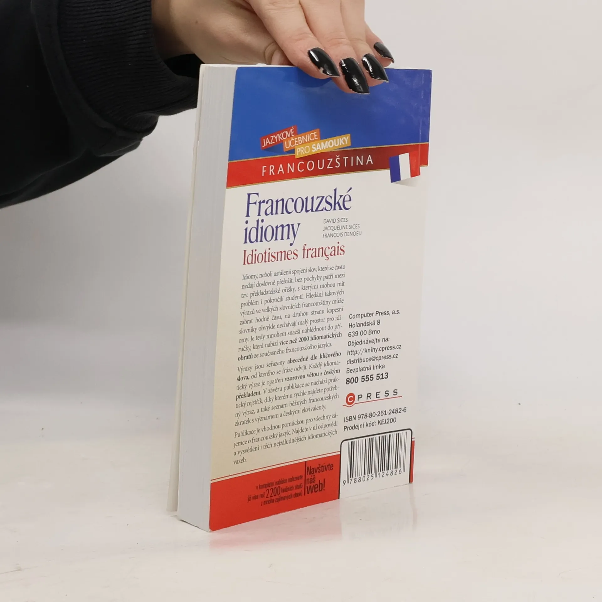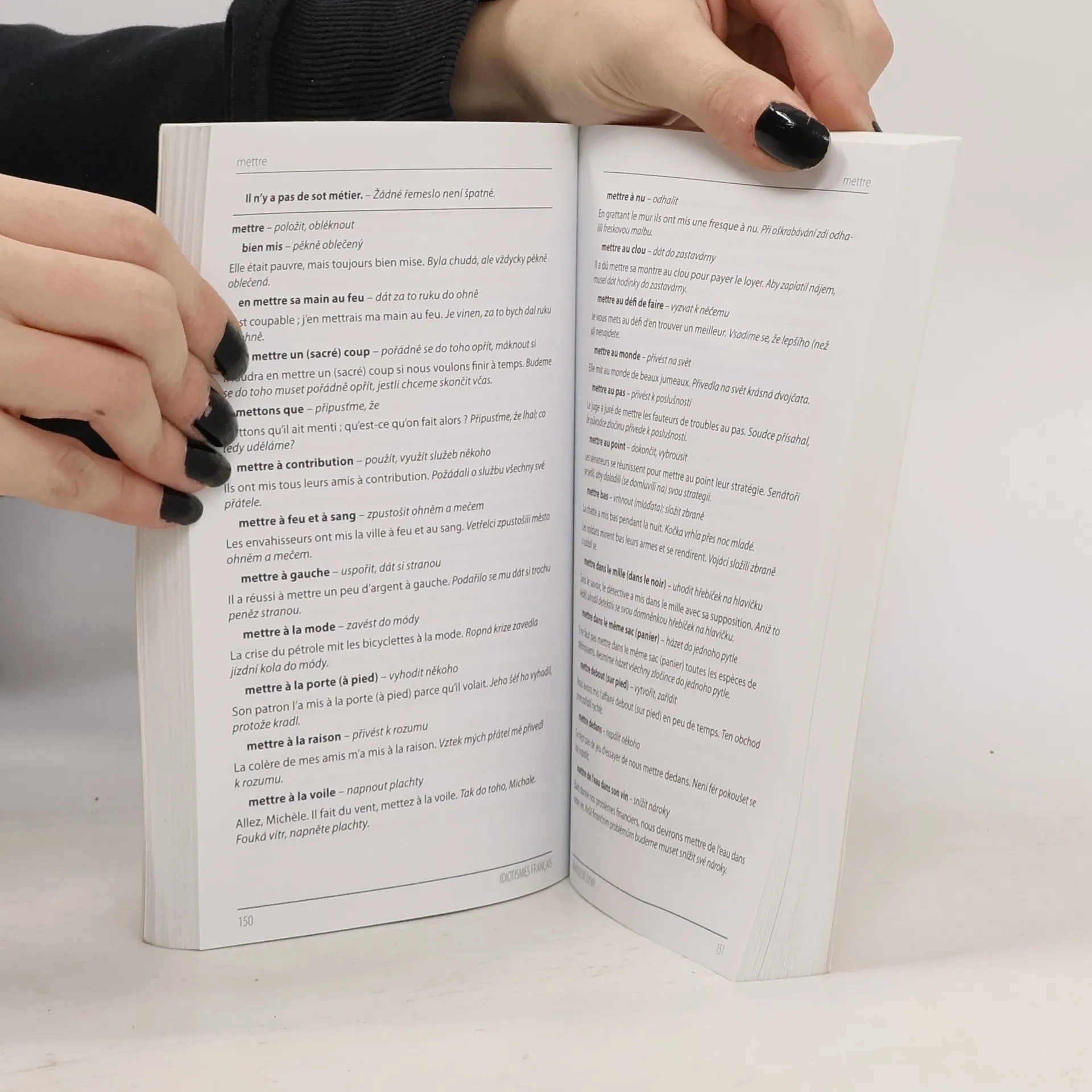 Idiomy, neboli ustálená spojení slov, které se často nedají doslovně přeložit, bez pochyby patří mezi tzv. překladatelské oříšky, s kterými mohou mít problém i pokročilí studenti. Hledání takových výrazů ve velkých slovnících francouzštiny může zabrat hodně času, na druhou stranu kapesní slovníky obvykle nechávají malý prostor pro idiomy. Je tedy mnohem snazší nahlédnout do příručky, která vám nabízí více než 2000 idiomatických obratů ze současného francouzského jazyka. Výrazy jsou seřazeny abecedně dle klíčového slova, od kterého se fráze odvíjí. Každý idiomatický výraz je opatřen vzorovou větou s českým překladem. V závěru publikace se nachází praktický rejstřík, díky kterému rychle najdete potřebný výraz, a také seznam běžných francouzských zkratek s významem a českými ekvivalenty. Publikace je vhodnou pomůckou pro všechny zájemce o francouzský jazyk. Najdete v ní odpovědi a vysvětlení i těch nejzáludnějších idiomatických vazeb.