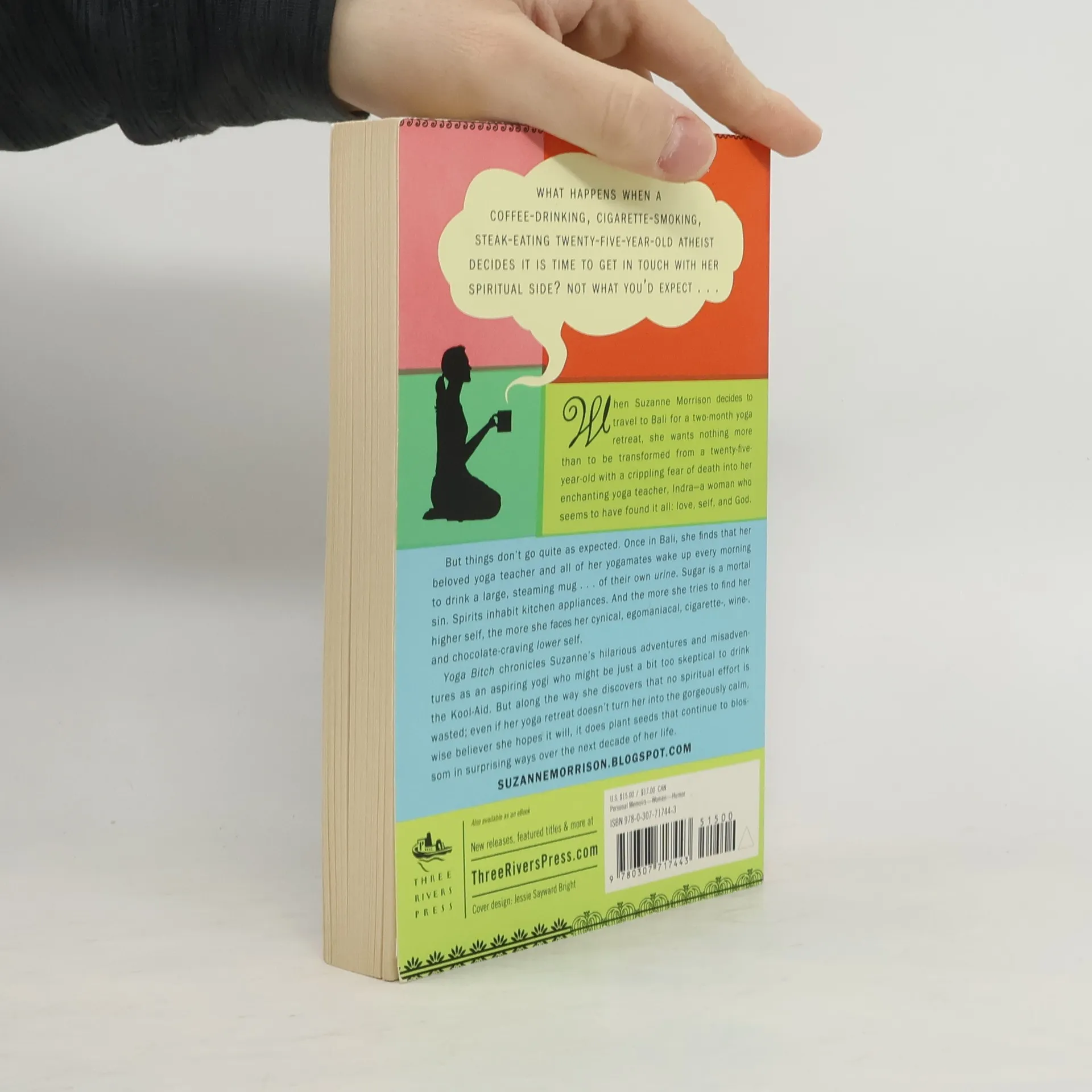 What happens when a coffee-drinking, cigarette-smoking, steak-eating twenty-five-year-old atheist decides it is time to get in touch with her spiritual side? Not what you’d expect . . . When Suzanne Morrison decides to travel to Bali for a two-month yoga retreat, she wants nothing more than to be transformed from a twenty-five-year-old with a crippling fear of death into her enchanting yoga teacher, Indra—a woman who seems to have found it all: love, self, and God. But things don’t go quite as expected. Once in Bali, she finds that her beloved yoga teacher and all of her yogamates wake up every morning to drink a large, steaming mug . . . of their own urine. Sugar is a mortal sin. Spirits inhabit kitchen appliances. And the more she tries to find her higher self, the more she faces her cynical, egomaniacal, cigarette-, wine-, and chocolate-craving lower self. Yoga Bitch chronicles Suzanne’s hilarious adventures and misadventures as an aspiring yogi who might be just a bit too skeptical to drink the Kool-Aid. But along the way she discovers that no spiritual effort is wasted; even if her yoga retreat doesn’t turn her into the gorgeously calm, wise believer she hopes it will, it does plant seeds that continue to blossom in surprising ways over the next decade of her life.