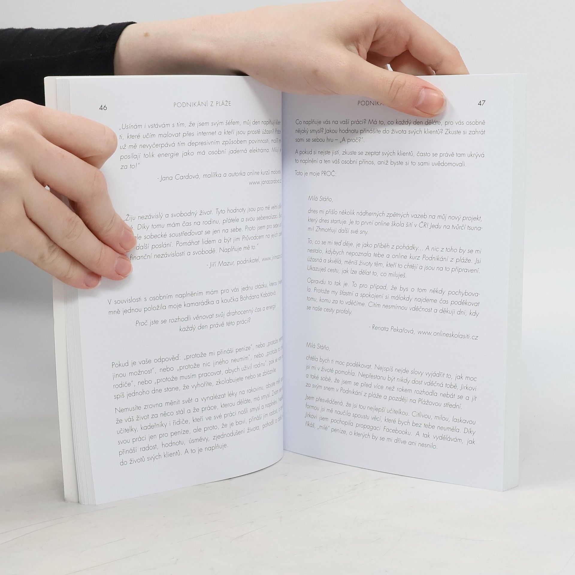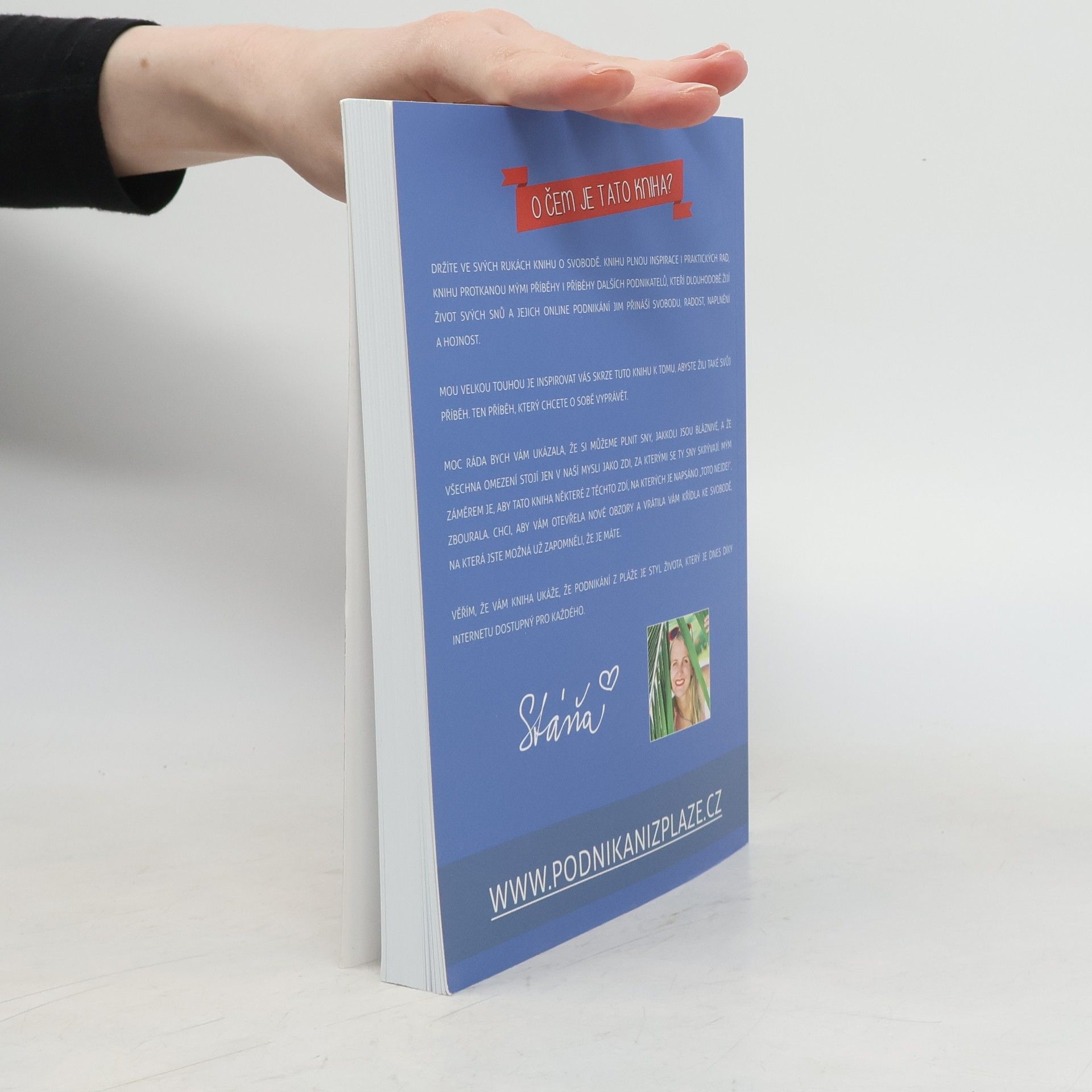 Nové, aktualizované a rozšířené vydání z roku 2020. Autorka o své knize píše: Je to pár let, co jsem žila na okraji zaprášeného sídliště v Havířově. V srdci jsem měla veliké sny o tom, jak procestuji svět, navštívím Himaláje, prožiju zimy na Bali a ukážu svým dětem krásy života. Realita byla ale dost jiná. Dvě maličké děti, krachující stavební firma i manželství a v peněžence pár korun. Bylo mi 26 let a měla jsem pocit, že jsem odsouzena k životu, který absolutně nemá smysl. Jaký má totiž smysl život, ve kterém není místo pro lásku, svobodu a splněné sny? Jaký smysl má žít život, ve kterém má člověk pořád strach, jak vyjde s penězi další měsíc? Jaký smysl má ukazovat dětem život, ve kterém já nejsem šťastná? Budou jednou šťastné ony? Rozhodla jsem se to změnit. O náročné proměně mého života, mých krocích do neznáma, vypořádávání se se strachem, stejně jako o tom, jak jsem díky tomu došla až ke životu, který žiju dnes, je právě moje kniha Podnikání z pláže.