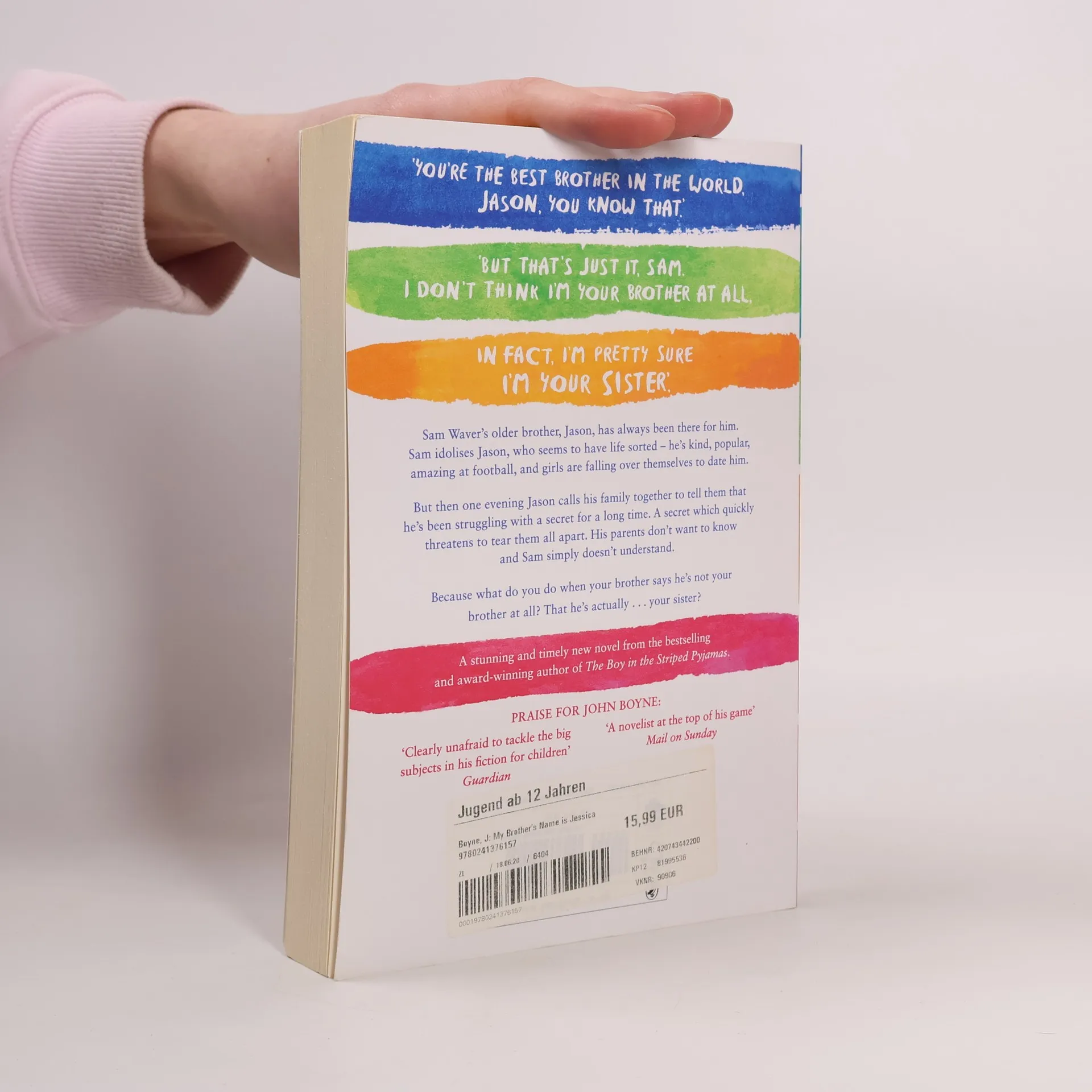 A stunning and timely new novel from the bestselling author of THE BOY IN THE STRIPED PYJAMAS. Sam is a bit of a loner. But his older brother Jason has always been there for him. Then Jason calls his family together to tell them that he's been struggling with a secret for a long time. What do you do when your brother says he's not your brother at all? That he thinks he's actually ... your sister?