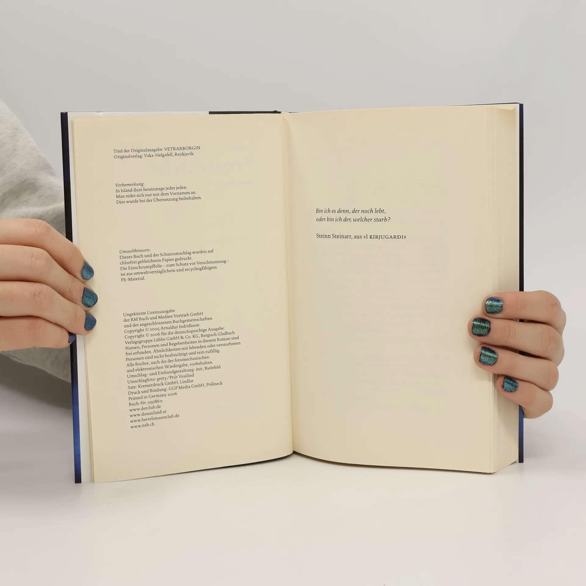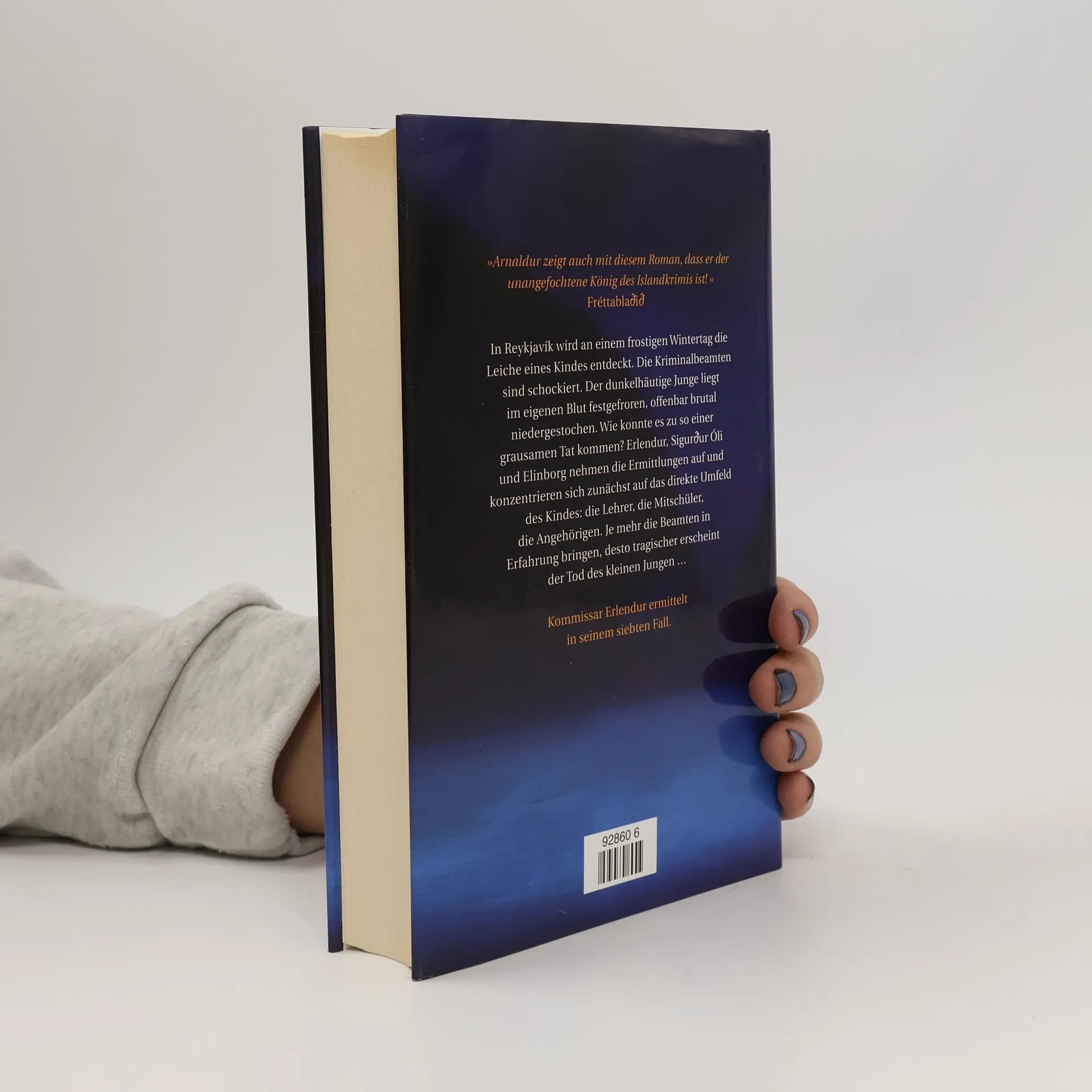 In Reykjavík wird an einem frostigen Wintertag die Leiche eines Kindes entdeckt. Die Kriminalbeamten sind schockiert: Der dunkelhäutige Junge liegt im eigenen Blut festgefroren, offenbar brutal niedergestochen. Wie konnte es zu so einer grausamen Tat kommen? Erlendur, Sigurður Óli und Elinborg nehmen die Ermittlungen auf und konzentrieren sich zunächst auf das direkte Umfeld des Kindes: die Lehrer, die Mitschüler, die Angehörigen. Je mehr die Beamten in Erfahrung bringen, desto tragischer erscheint der Tod des kleinen Jungen ... Kommissar Erlendur ermittelt in seinem siebten Fall.