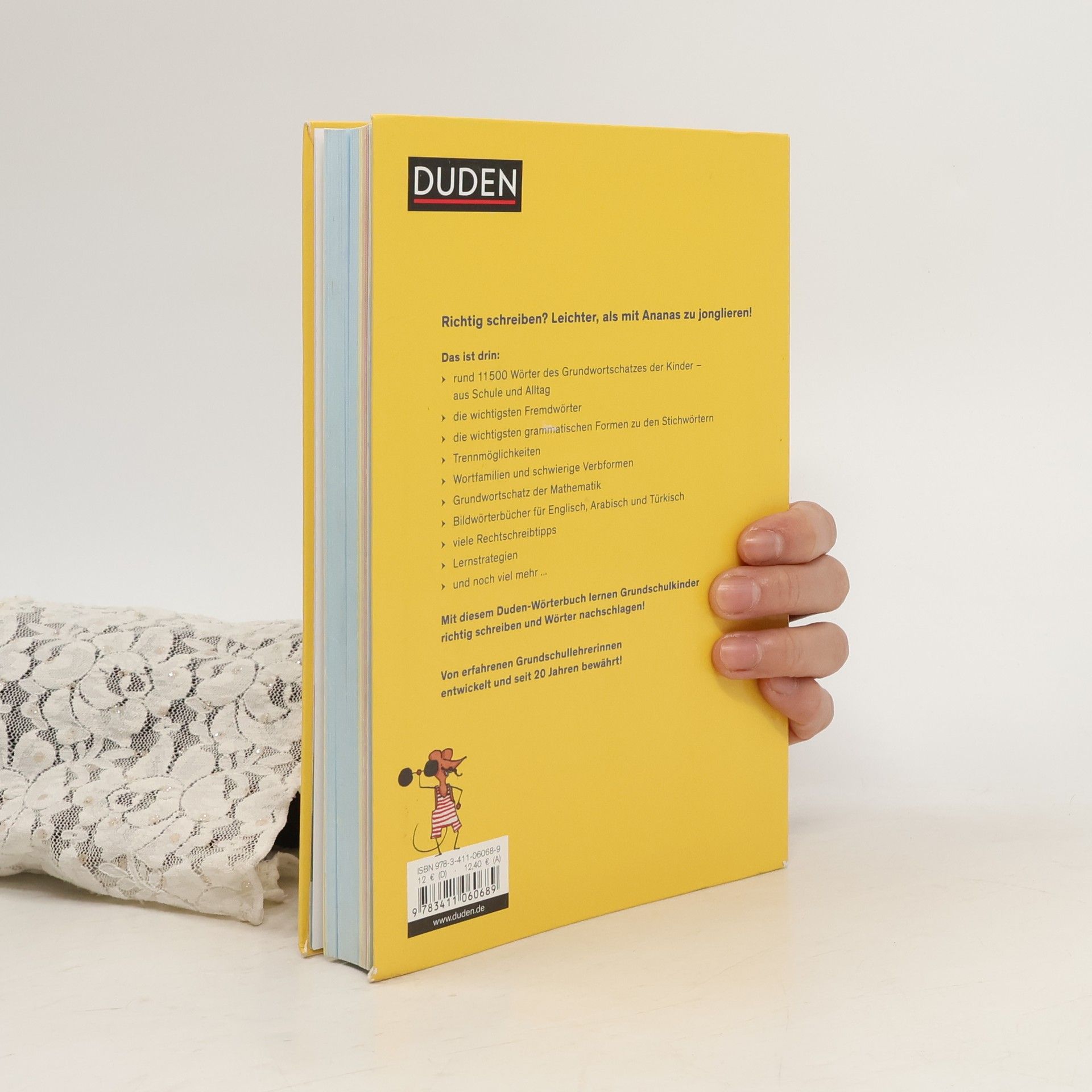 „Das Grundschulwörterbuch" - seit über 20 Jahren DER Duden für Kinder.Vollständig überarbeitet und erweitert, enthält dieser Band gut 11.500 Wörter und bildet so den Wortschatz für die gesamte Grundschulzeit ab. Das beliebte Nachschlagewerk bietet:- eine übersichtliche A-Z-Wörterliste mit Silbentrennung und flektierten Formen- eine Liste der schwierigen Verbformen- Extrakapitel zu Wortfamilien und Wortfeldern (inklusive Synonymen für abwechslungsreiches Formulieren)- zahlreiche Rechtschreibtipps und -strategien- einen liebevoll illustrierten Bildwörterbuchteil in Englisch, Türkisch und Arabisch- ein Glossar der wichtigsten Fachbegriffe aus dem Deutsch- und Mathematikunterricht Mit einer Arbeitsblatt- und Materialsammlung für Lehrerinnen und Lehrer zum Downloaden inklusive umfangreichem Themenwortschatz, einer A-Z-Wörterliste für die 1. Klasse sowie einem Bildwörterbuchteil in Französisch. Das Grundschulwörterbuch von Duden ermöglicht Kindern ab der 2. Klasse ein einfaches Nachschlagen und begleitet sie sicher beim Lernen und Schreiben schwieriger Wörter. Liebevoll und mit viel Witz von Kerstin Meyer illustriert, macht das Buch Lust aufs Stöbern und Wörterfinden. Von Lehrerinnen und Lehrern empfohlen.