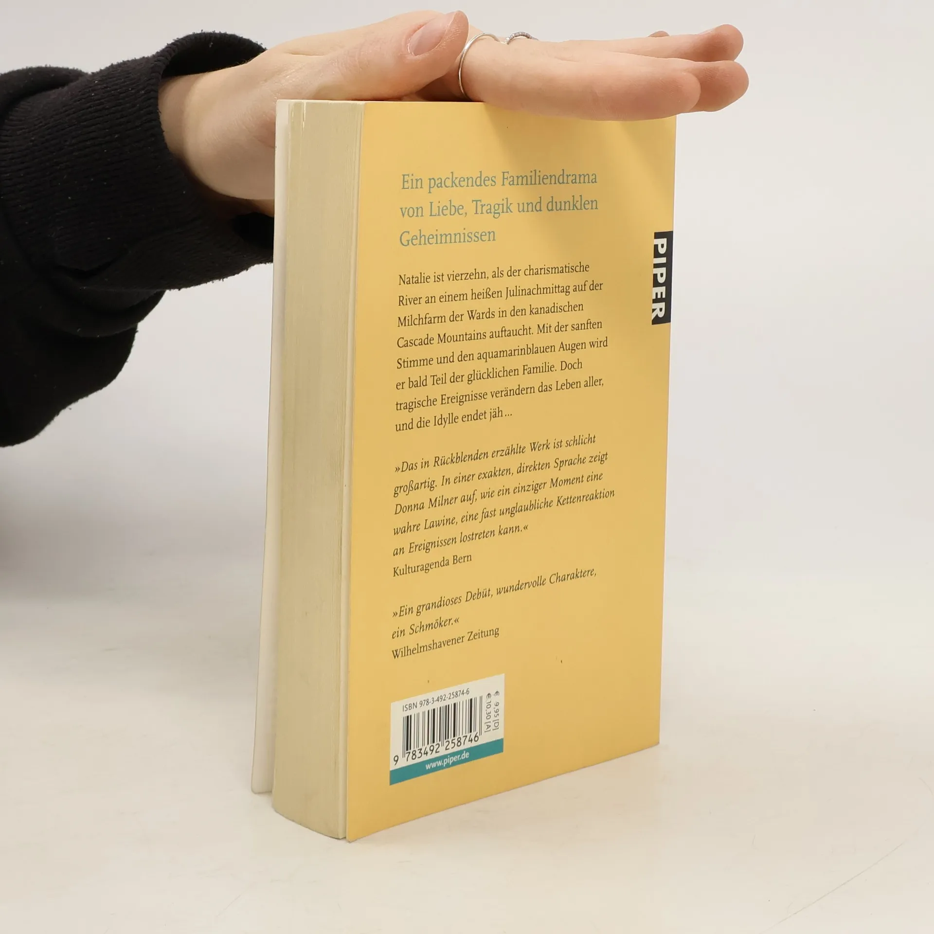 Natalie ist vierzehn, als der charismatische River an einem heißen Julinachmittag auf der Milchfarm der Wards in den kanadischen Cascade Mountains auftaucht. Mit der sanften Stimme und den aquamarinblauen Augen wird er bald Teil der glücklichen Familie. Doch tragische Ereignisse verändern das Leben aller und die Idylle endet jäh …