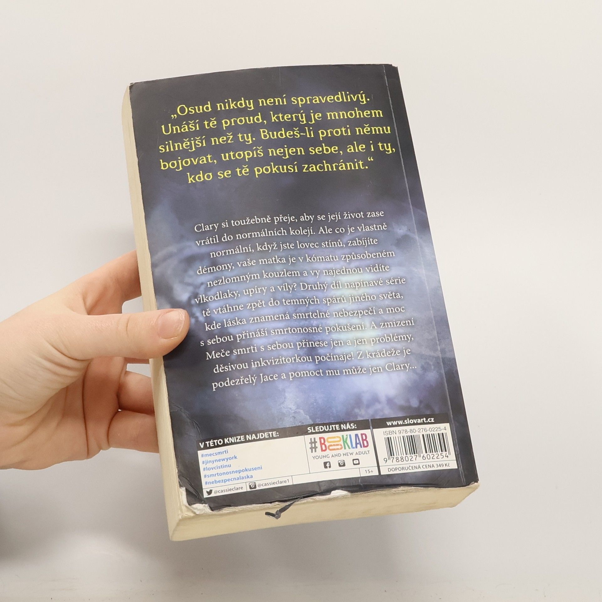 Druhý díl trilogie na hranici městské a temné fantasy. Clary Frayová si toužebně přeje, aby se její život zase vrátil do normálních kolejí. Ale co je vlastně normální, když jste lovec stínů? Kdyby se Clary obrátila ke světu lovců stínů zády, mohla by trávit víc času se svým nejlepším kamarádem Simonem, ze kterého se postupně stává něco víc než jen kamarád. Lovci stínů ji však nehodlají nechat odejít, obzvláště její pohledný, avšak nesnesitelný znovunalezený bratr Jace. Navíc jediný způsob, jak by mohla Clary pomoci své matce, je najít Valentýna, ničemného a nejspíš šíleného lovce stínů, který je zároveň jejím otcem. Nakladatelská anotace. Kráceno.