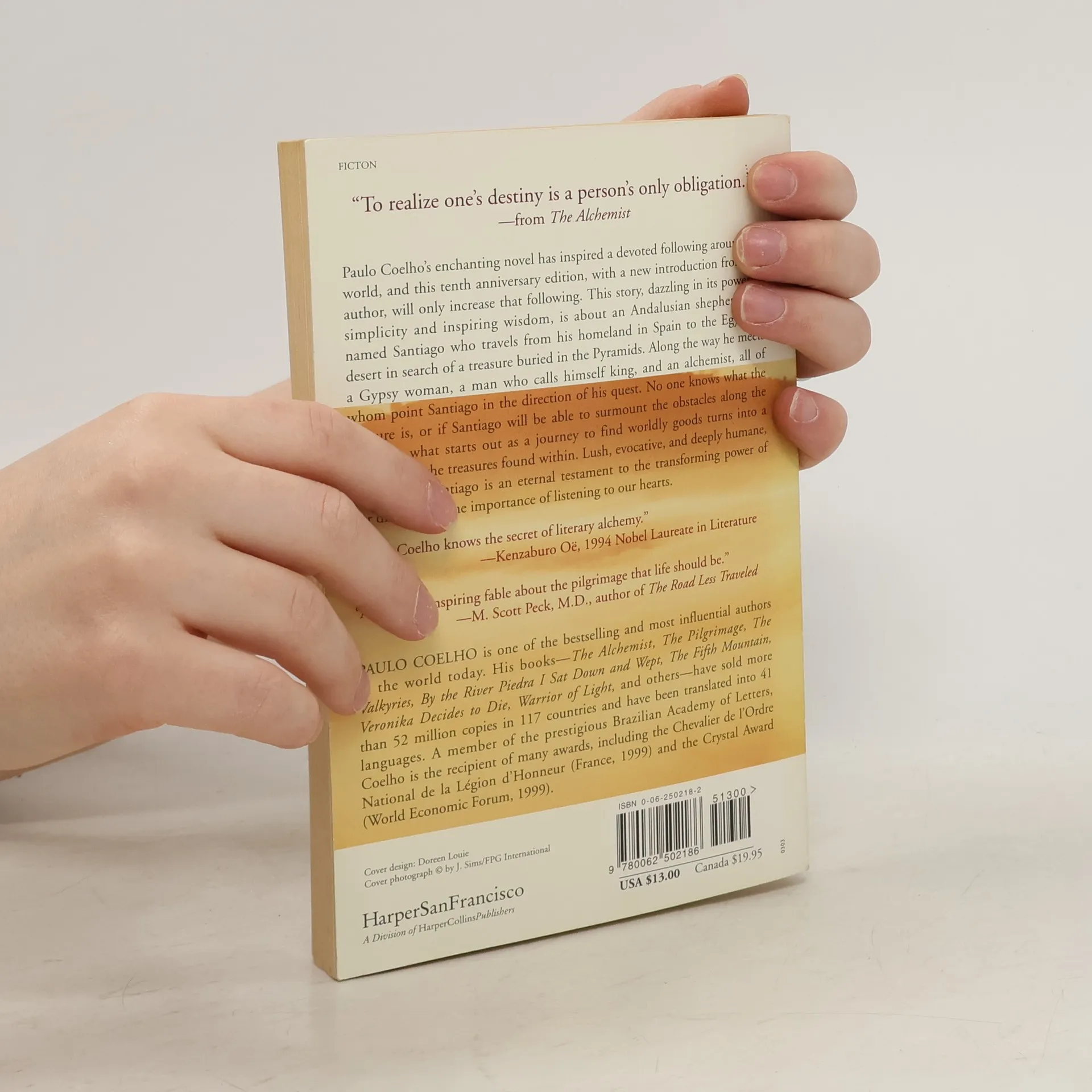 A Fable About Following Your Dream Paulo Coelho's enchanting novel has inspired a devoted following around the world, and this tenth anniversary edition, with a new introduction from the author, will only increase that following. This story, dazzling in its powerful simplicity and inspiring wisdom, is about an Andalusian shepherd boy named Santiago who travels from his homeland in Spain to the Egyptian desert in search of a treasure buried in the Pyramids. Along the way he meets a Gypsy woman, a man who calls himself king, and an alchemist, all of whom point Santiago in the direction of his quest. No one knows what the treasure is, or if Santiago will be able to surmount the obstacles along the way. But what starts out as a journey to find worldly goods turns into a discovery of the treasures found within. Lush, evocative, and deeply humane, the story of Santiago is an eternal testament to the transforming power of our dreams and the importance of listening to our hearts.
