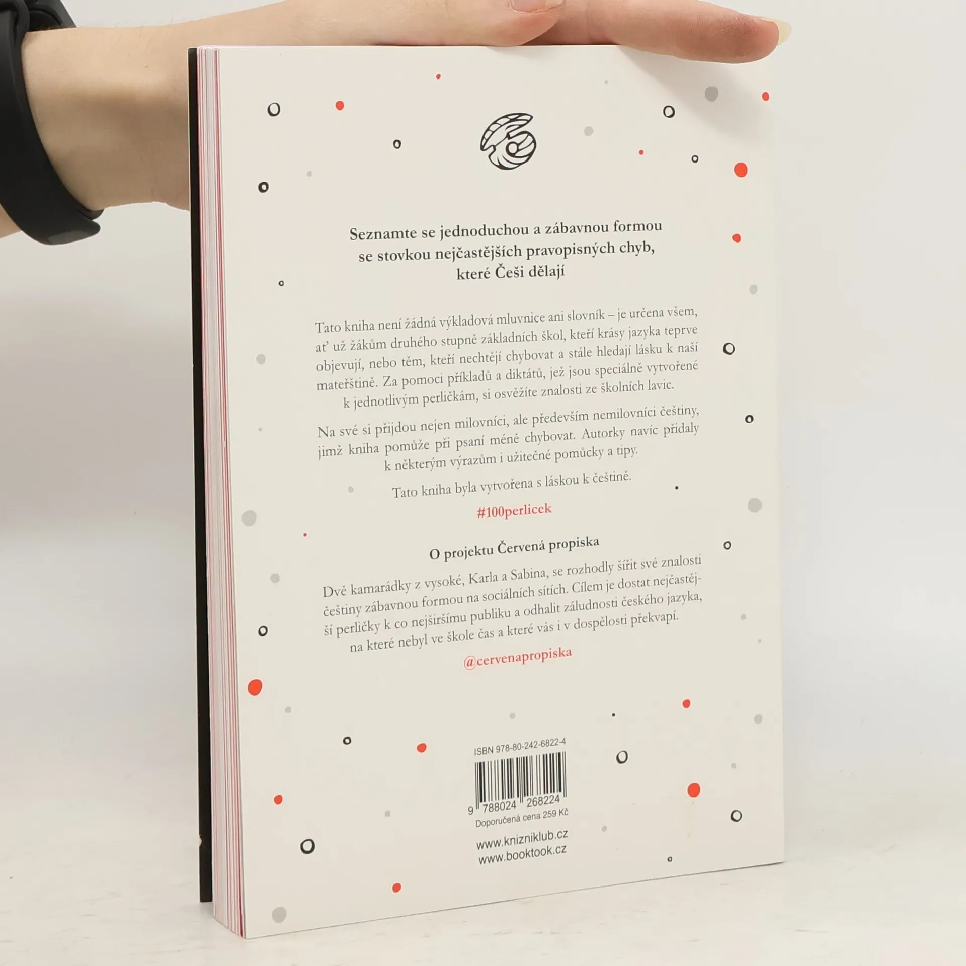 Seznamte se jednoduchou a zábavnou formou se stovkou nejčastějších pravopisných a gramatických chyb, které Češi dělají. Tato kniha není žádná výkladová mluvnice ani slovník – je určena všem, ať žákům druhého stupně základních škol, kteří krásy jazyka teprve objevují, nebo těm, kteří nechtějí chybovat a stále hledají lásku k naší mateřštině. Za pomoci příkladů a diktátů, které jsou speciálně vytvořené k jednotlivým perličkám, si osvěžíte znalosti ze školních lavic, které jste třeba i zapomněli. Na své si přijdou nejen milovníci, ale především nemilovníci češtiny, kterým kniha může pomoct v textech méně chybovat. Autorky navíc přidaly k některým výrazům i užitečné pomůcky a tipy. Tato kniha byla vytvořena s láskou k češtině. #100perlicek
