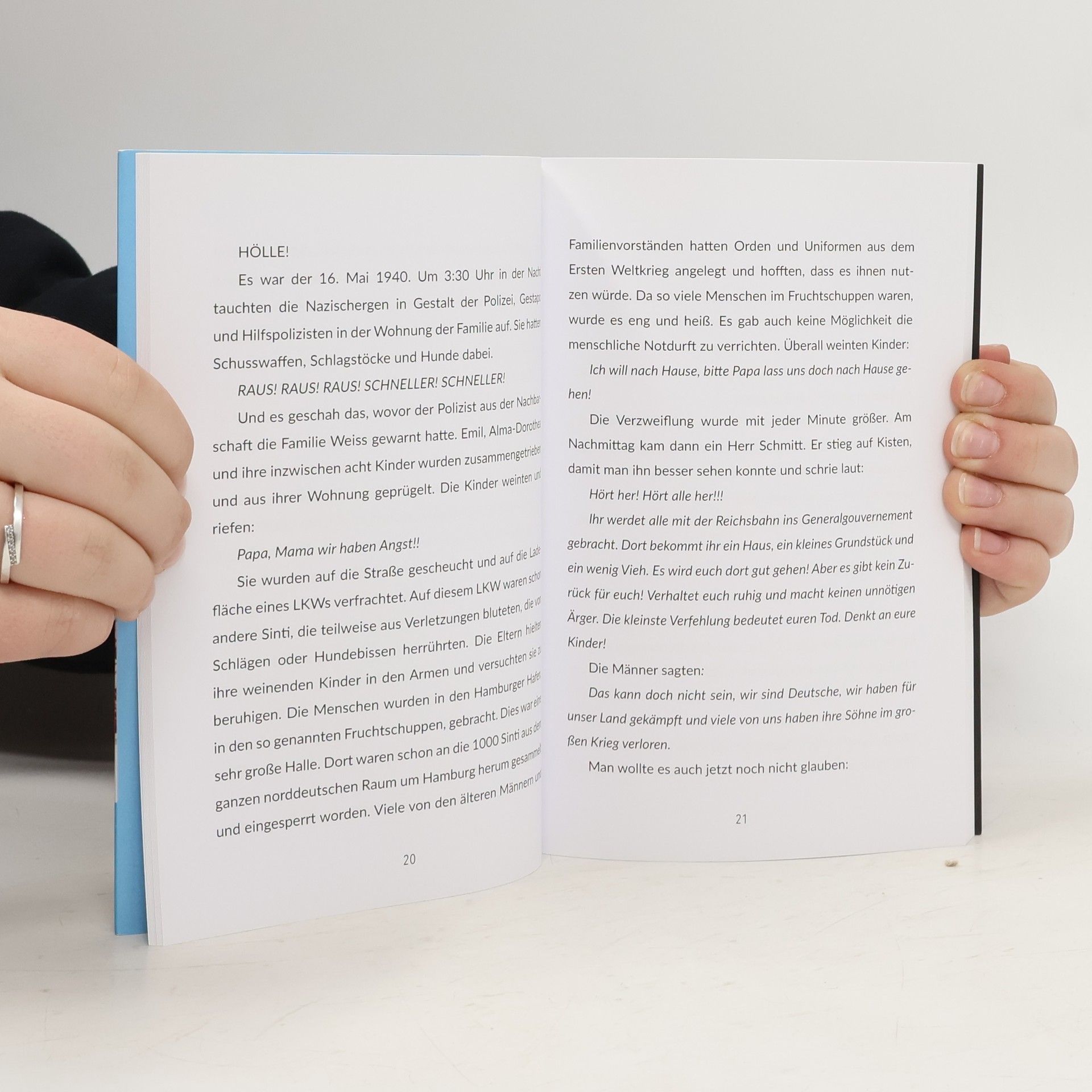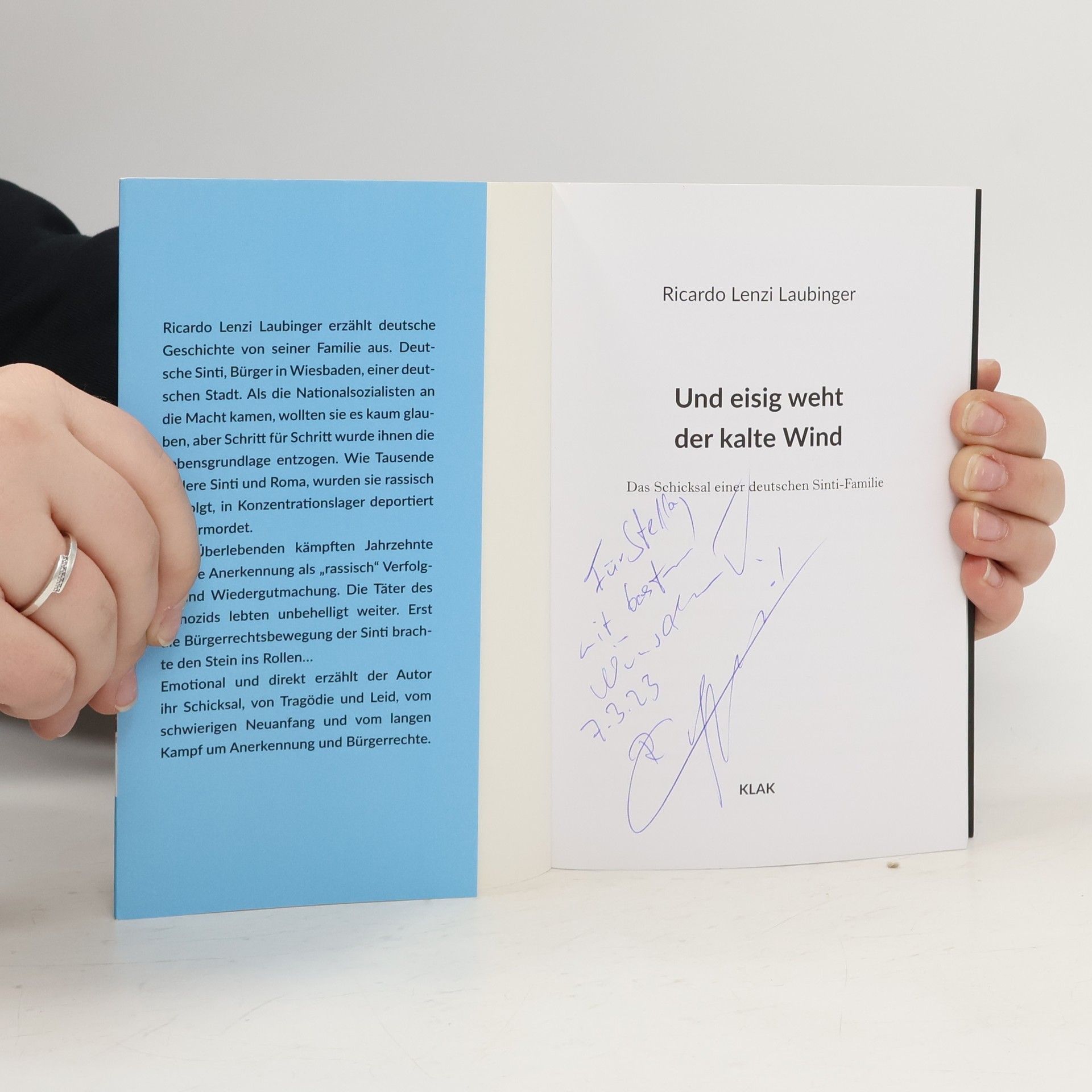 Ricardo Lenzi Laubinger erzählt deutsche Geschichte von seiner Familie aus. Deutsche Sinti, normale Mitbürger in Wiesbaden, einer deutschen Stadt. In Wiesbaden. Als die Nationalsozialisten an die Macht kamen, wollten sie es kaum glauben, aber Schritt für Schritt wurde ihnen die Lebensgrundlage entzogen. Wie tausende andere Sinti und Roma, wurden sie rassisch verfolgt, in Konzentrationslager deportiert und ermordet. Die Überlebenden kämpften Jahrzehnte um die Anerkennung als „rassisch“ Verfolgte. Die Täter des Genozids lebten unbehelligt weiter. Erst die Bürgerrechtsbewegung der Sinti brachte den Stein ins Rollen… Emotional und direkt erzählt der Autor von ihrer Herkunft, Tragödie und Leid, vom schwierigen Neuanfang und vom langen Kampf um Anerkennung und Bürgerrechte.