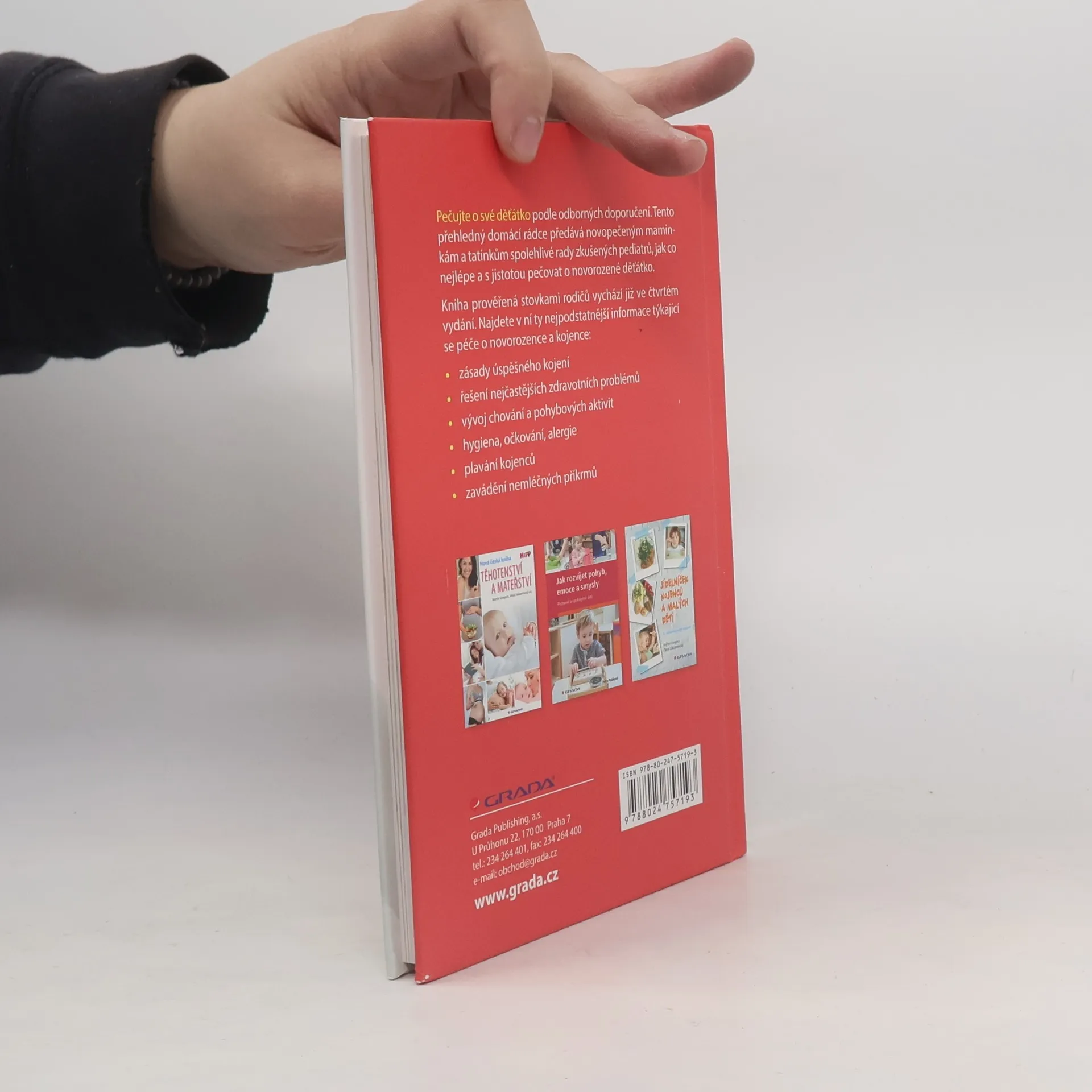Hledáte spolehlivou radu a pomoc při péči o novorozené děťátko? Tato příručka českých odborníků vám ji poskytne. Přehledný rádce pro novopečené maminky si získal velkou oblibu a nyní vychází již ve čtvrtém vydání. Spolehněte se na praktické, odborné a zároveň empatické rady zkušených pediatrů. Narození děťátka s sebou přináší radost i mnoho tušených, ale i naprosto nečekaných starostí a otázek. Kniha českých odborníků vás bezpečně provede prvními měsíci života vašeho potomka a zodpoví nejčastější dotazy týkající se péče o zdraví miminka, kojení, očkování, hygieny a všech potřeb vašeho maličkého. Příručka, kterou zvládnete přečíst, ještě než se s novorozencem vrátíte z porodnice, vám pomůže být sebevědomou a dobrou maminkou.