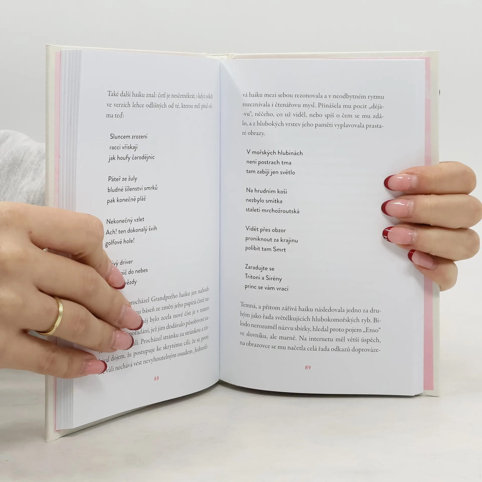 Pokud jste se někdy chtěli někdy nakouknout do poezie a haiku, knížka je pro vás. Asi jediná knížka beletrie, kde se děj posouvá i skrz básně.