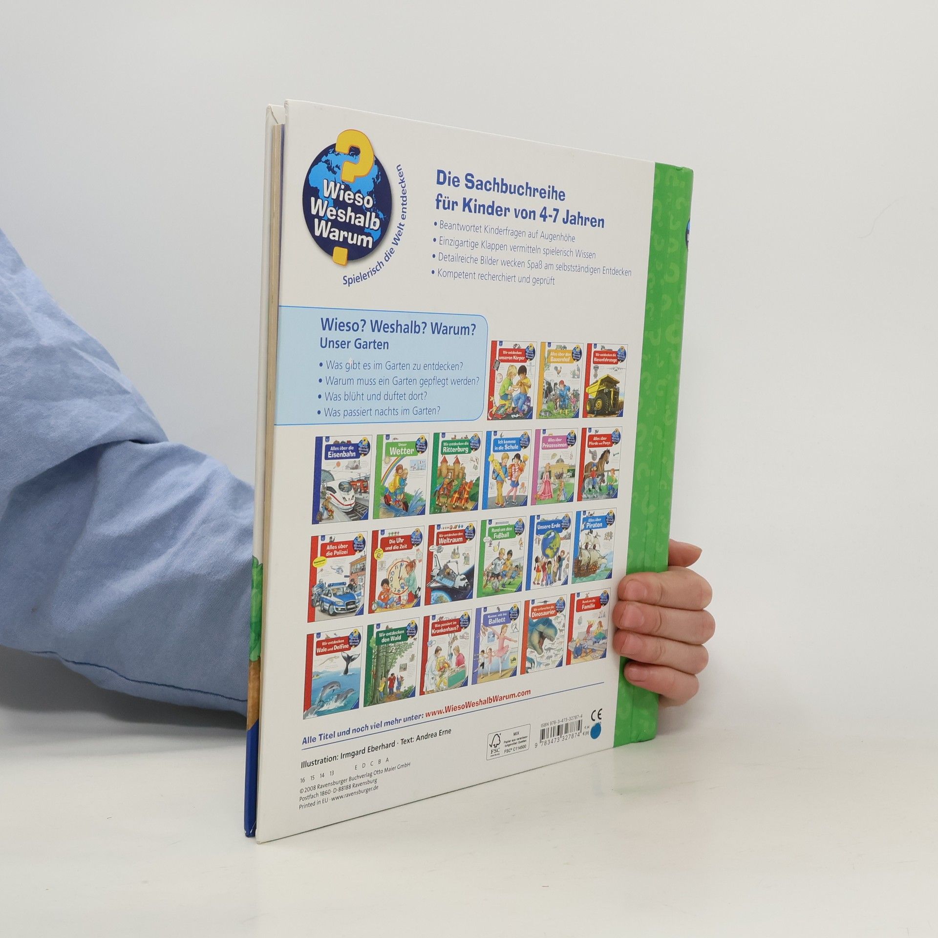 Blumen pflanzen, Früchte naschen oder Laub kehren – im Garten gibt es immer etwas zu tun. Wie wächst eine Pflanze? Was grünt und blüht im Garten? Und wie sieht es hier in der Nacht aus? Farbenfroh und altersgerecht beantwortet dieses Buch Kinderfragen rund um den Garten, seine Pflege, seine Pflanzen und seine tierischen Besucher – von der Amsel bis zum Zitronenfalter. Dank vieler Klappen, Rezepte, Spiel- und Bastelideen, erleben Kinder den Garten mit allen Sinnen.Wieso? Weshalb? Warum? Die Sachbuchreihe für Kinder von 4–7 Jahren Jeden Tag entdecken Kinder etwas Neues – da kommen viele Fragen auf. Warum sind die Dinosaurier ausgestorben? Wo ist die Sonne in der Nacht? Wozu brauchen wir das Blut? Die beliebte Sachbuchreihe Wieso? Weshalb? Warum? gibt Kindern Antworten auf Augenhöhe. Dabei werden die unterschiedlichsten Themen aus der Alltags- und Interessenswelt der Kinder altersgerecht und mit viel Liebe zum Detail unter die Lupe genommen. Detailreiche Bilder, verständliche Sachtexte und überraschende Klappen, die Bewegungen oder Abläufe veranschaulichen und hinter die Dinge blicken lassen, ermöglichen Kindern, sich ihre Themen selbst zu erschließen. Der Spaß am eigenhändigen Entdecken, die liebevolle Umsetzung und die qualitativ hochwertige Ausstattung garantieren langanhaltende Freude an jedem einzelnen Buch.