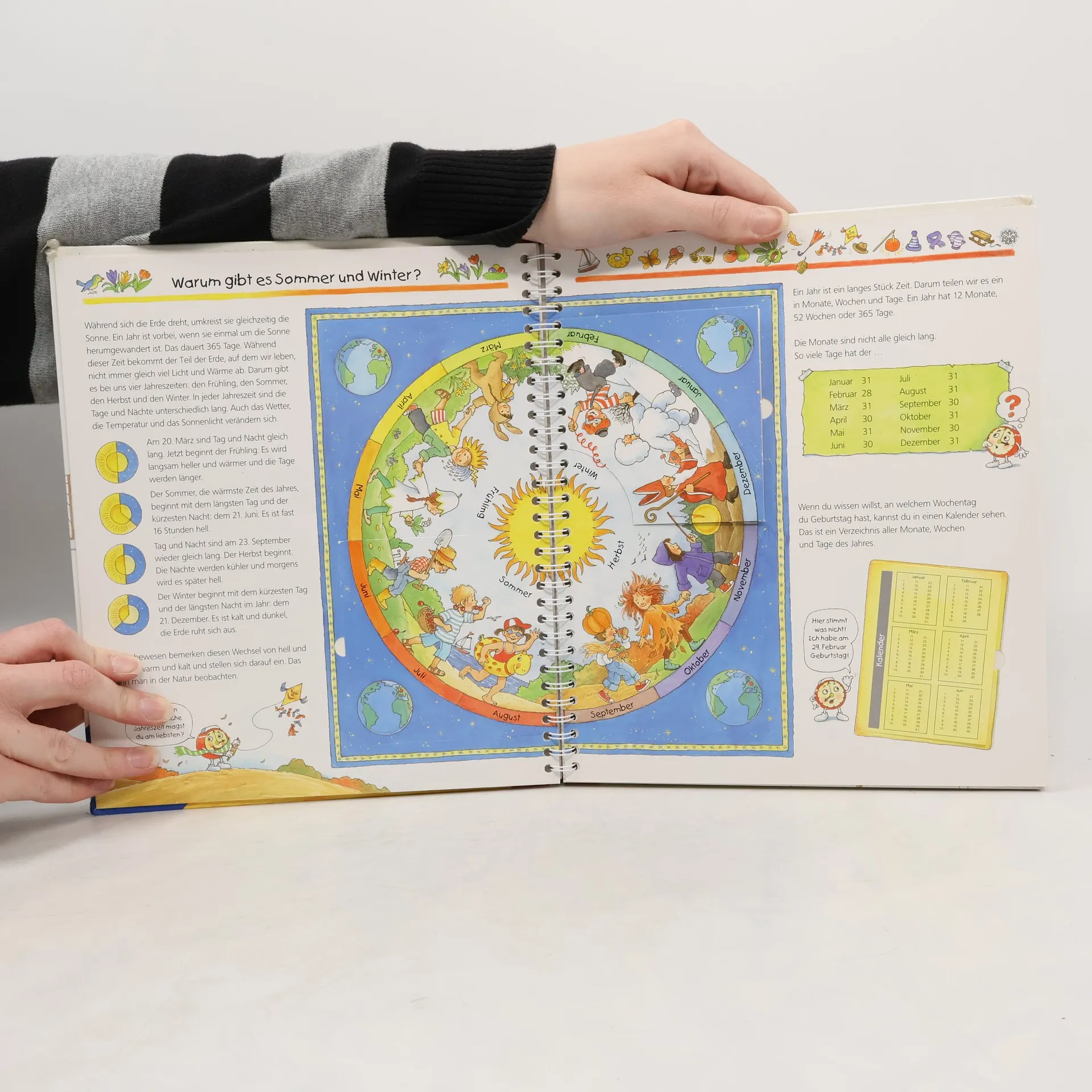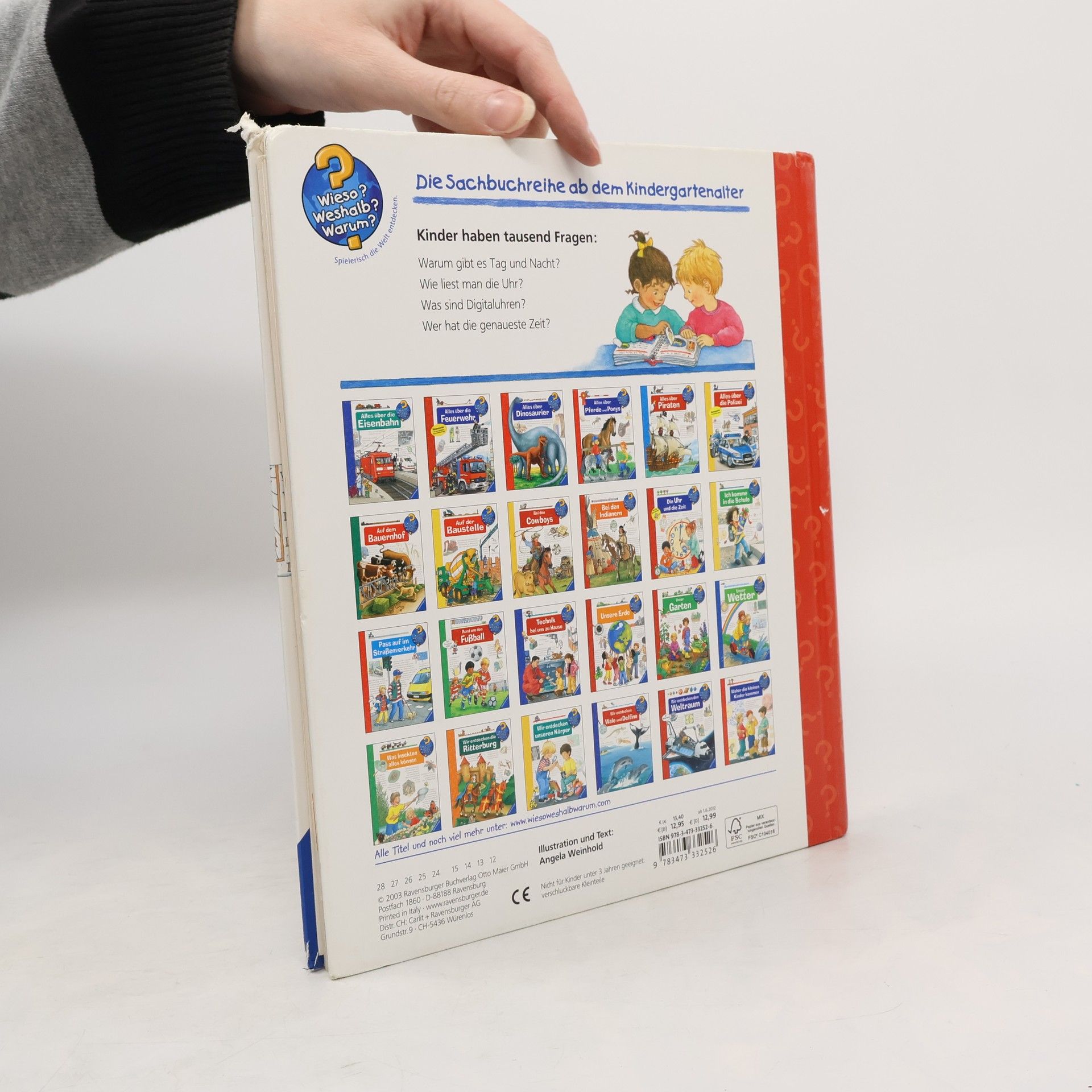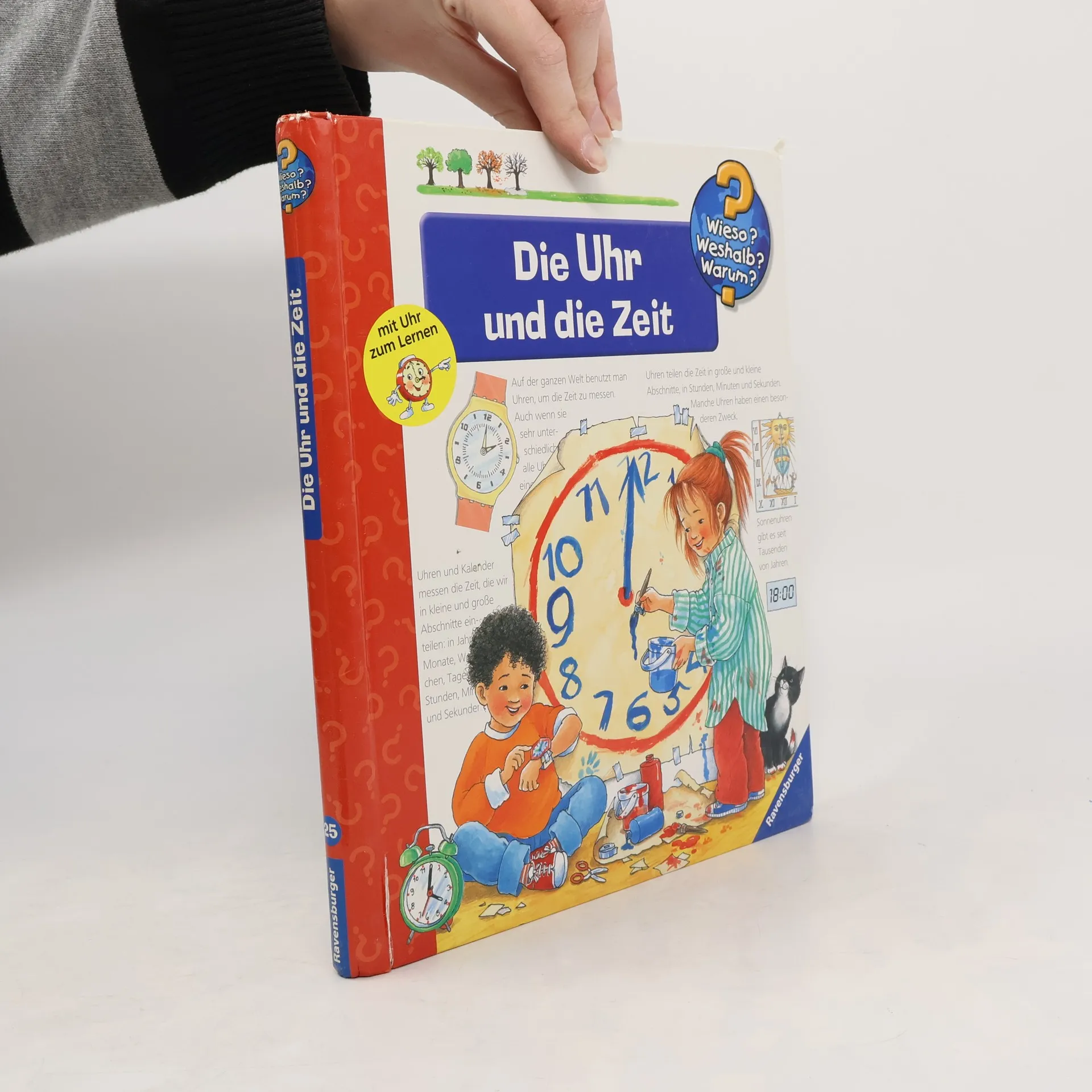 Warum muss man sich eigentlich ständig beeilen und pünktlich im Kindergarten oder bei der Arbeit sein? Mit diesem Buch lernen Kinder das Phänomen Zeit anhand leicht verständlicher Einteilungen wie Tages- und Jahreszeiten kennen. Auch Zeiteinheiten wie Minute, Tag und Jahr werden anschaulich erläutert. Mithilfe der im Buch befestigten Übungsuhr können die Kinder Schritt für Schritt selbst ausprobieren, wie man Uhrzeiten bestimmt. Wieso? Weshalb? Warum? Die Sachbuchreihe für Kinder von 4–7 Jahren Jeden Tag entdecken Kinder etwas Neues – da kommen viele Fragen auf. Warum sind die Dinosaurier ausgestorben? Wo ist die Sonne in der Nacht? Wozu brauchen wir das Blut? Die beliebte Sachbuchreihe Wieso? Weshalb? Warum? gibt Kindern Antworten auf Augenhöhe. Dabei werden die unterschiedlichsten Themen aus der Alltags- und Interessenswelt der Kinder altersgerecht und mit viel Liebe zum Detail unter die Lupe genommen. Detailreiche Bilder, verständliche Sachtexte und überraschende Klappen, die Bewegungen oder Abläufe veranschaulichen und hinter die Dinge blicken lassen, ermöglichen Kindern, sich ihre Themen selbst zu erschließen. Der Spaß am eigenhändigen Entdecken, die liebevolle Umsetzung und die qualitativ hochwertige Ausstattung garantieren langanhaltende Freude an jedem einzelnen Buch.