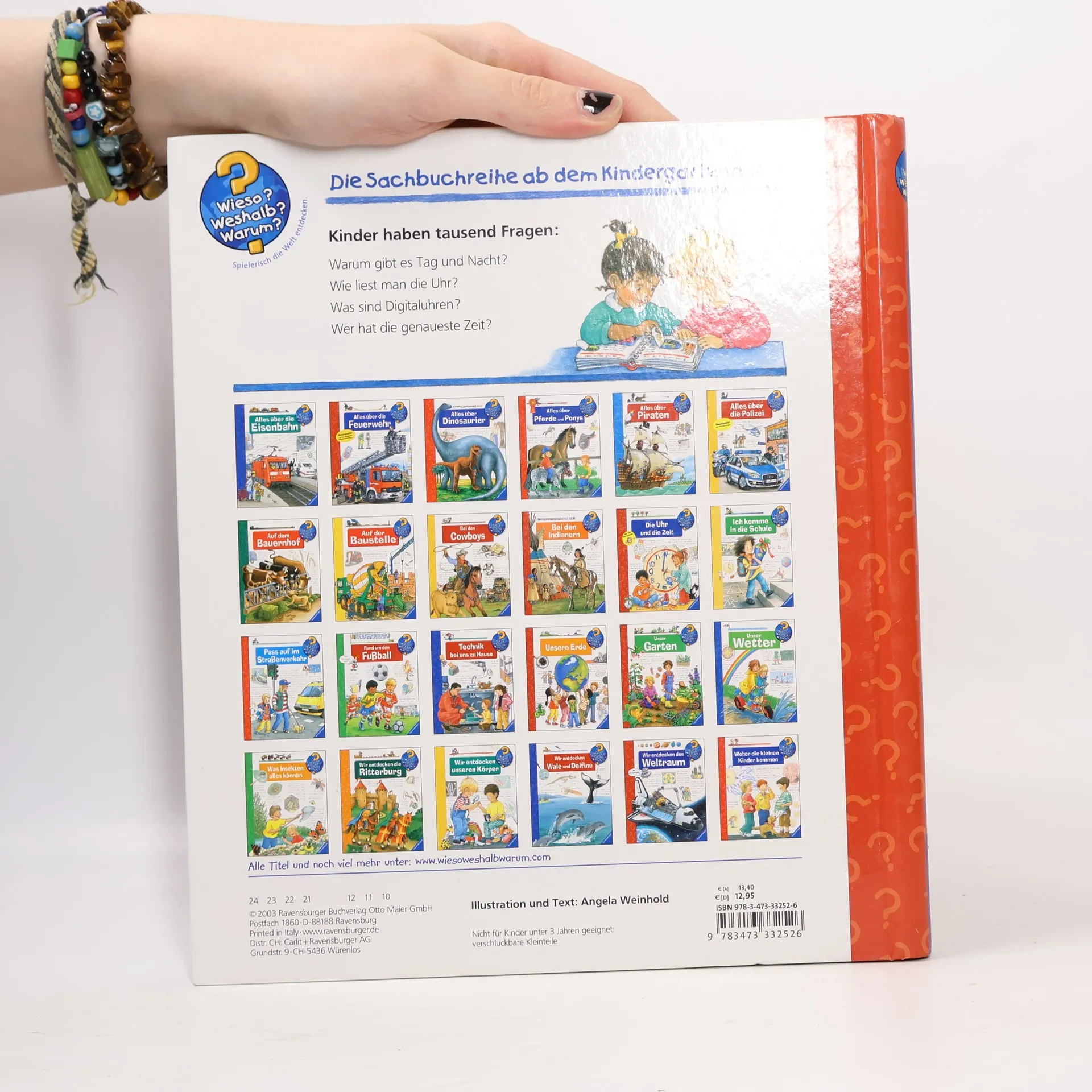 Warum muss man sich eigentlich ständig beeilen und pünktlich im Kindergarten oder bei der Arbeit sein? Mit diesem Buch lernen Kinder das Phänomen Zeit anhand leicht verständlicher Einteilungen wie Tages- und Jahreszeiten kennen. Auch Zeiteinheiten wie Minute, Tag und Jahr werden anschaulich erläutert. Mithilfe der im Buch befestigten Übungsuhr können die Kinder Schritt für Schritt selbst ausprobieren, wie man Uhrzeiten bestimmt. Wieso? Weshalb? Warum? Die Sachbuchreihe für Kinder von 4–7 Jahren Jeden Tag entdecken Kinder etwas Neues – da kommen viele Fragen auf. Warum sind die Dinosaurier ausgestorben? Wo ist die Sonne in der Nacht? Wozu brauchen wir das Blut? Die beliebte Sachbuchreihe Wieso? Weshalb? Warum? gibt Kindern Antworten auf Augenhöhe. Dabei werden die unterschiedlichsten Themen aus der Alltags- und Interessenswelt der Kinder altersgerecht und mit viel Liebe zum Detail unter die Lupe genommen. Detailreiche Bilder, verständliche Sachtexte und überraschende Klappen, die Bewegungen oder Abläufe veranschaulichen und hinter die Dinge blicken lassen, ermöglichen Kindern, sich ihre Themen selbst zu erschließen. Der Spaß am eigenhändigen Entdecken, die liebevolle Umsetzung und die qualitativ hochwertige Ausstattung garantieren langanhaltende Freude an jedem einzelnen Buch.