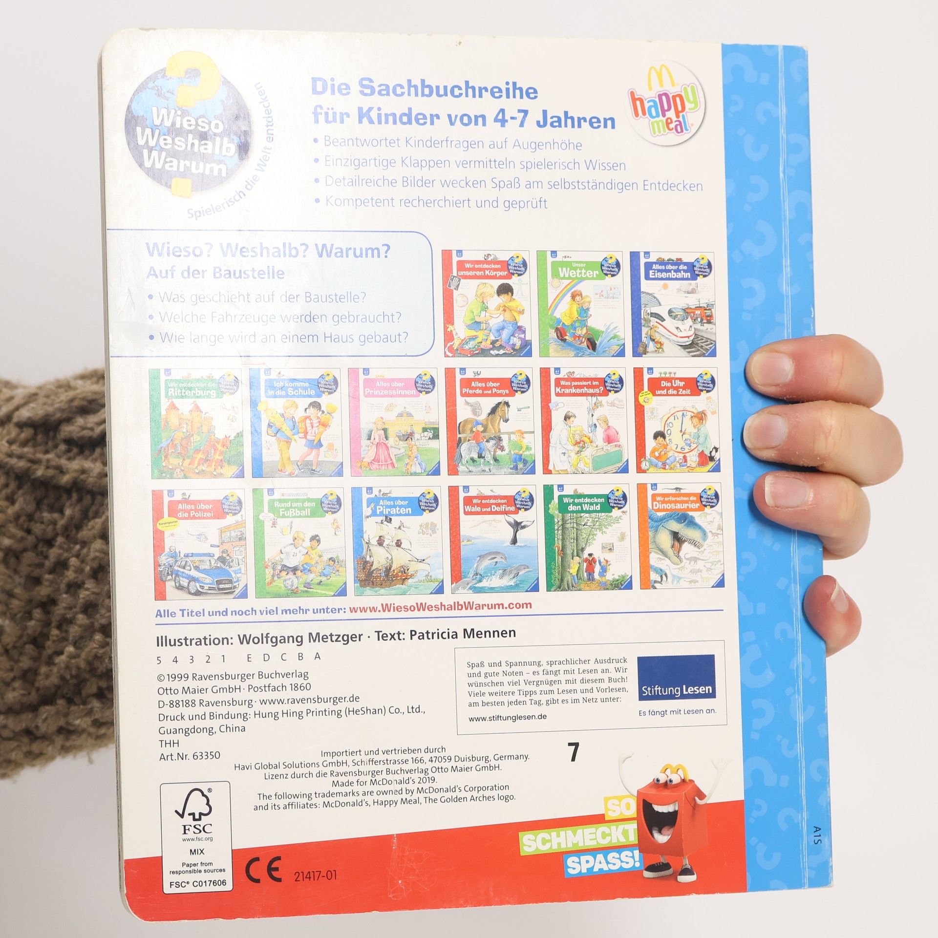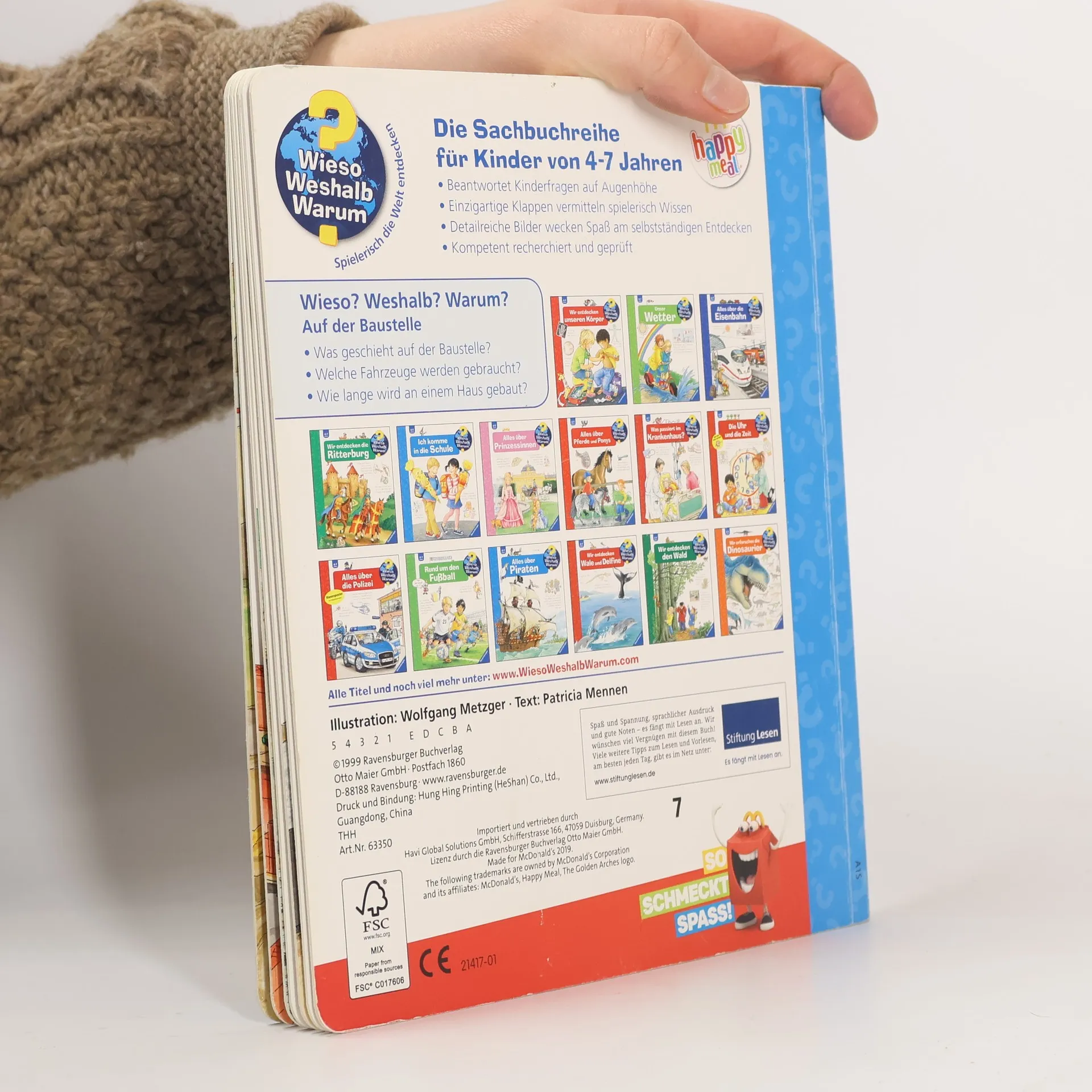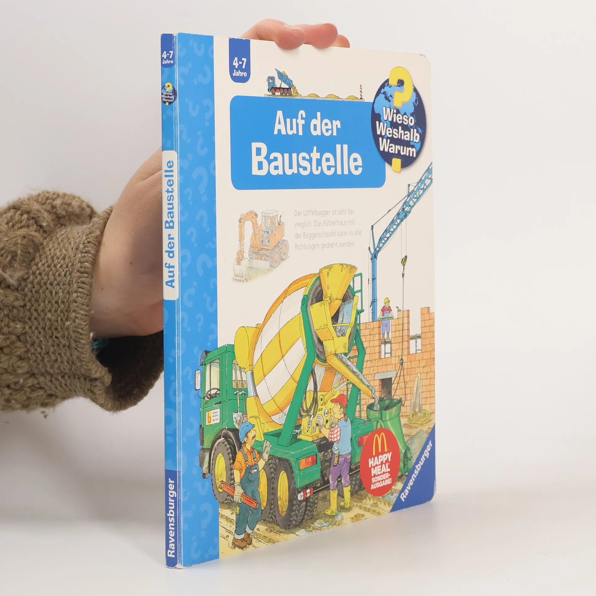 Mitten im Neubaugebiet bestaunen Kinder, wie Schritt für Schritt ein Haus entsteht: von der Vermessung über die Erdarbeiten und den Rohbau bis zum Innenausbau. Dabei entdecken sie Werkzeuge, Baumaschinen und Fahrzeuge. Klappen vermitteln, was Maurer, Zimmerleute und Elektriker für ihre Arbeit brauchen. Wie renoviert man ein altes Haus? Was passiert, wenn es abgerissen werden muss? Und wie werden Straßen und Brücken gebaut? Antworten finden Technik- und Fahrzeugfans in diesem Buch. Wieso? Weshalb? Warum? Die Sachbuchreihe für Kinder von 4–7 Jahren Jeden Tag entdecken Kinder etwas Neues – da kommen viele Fragen auf. Warum sind die Dinosaurier ausgestorben? Wo ist die Sonne in der Nacht? Wozu brauchen wir das Blut? Die beliebte Sachbuchreihe Wieso? Weshalb? Warum? gibt Kindern Antworten auf Augenhöhe. Dabei werden die unterschiedlichsten Themen aus der Alltags- und Interessenswelt der Kinder altersgerecht und mit viel Liebe zum Detail unter die Lupe genommen. Detailreiche Bilder, verständliche Sachtexte und überraschende Klappen, die Bewegungen oder Abläufe veranschaulichen und hinter die Dinge blicken lassen, ermöglichen Kindern, sich ihre Themen selbst zu erschließen. Der Spaß am eigenhändigen Entdecken, die liebevolle Umsetzung und die qualitativ hochwertige Ausstattung garantieren langanhaltende Freude an jedem einzelnen Buch.