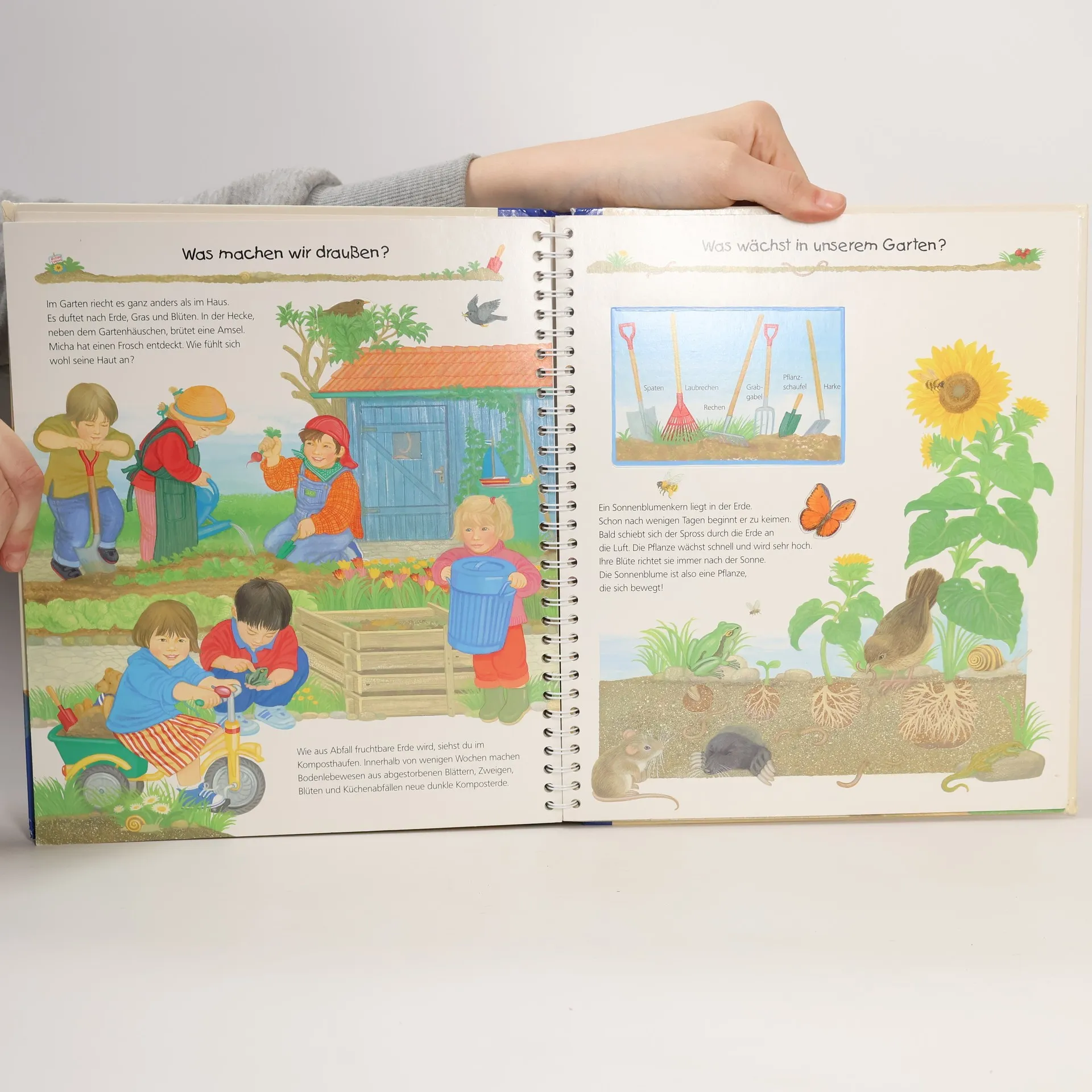 In einem Kindergarten ist immer etwas los. Das Buch führt durch den Alltag und vermittelt durch Klappen allererste Lerninhalte, wie das spielerische Erleben und Kennenlernen vom ABC.