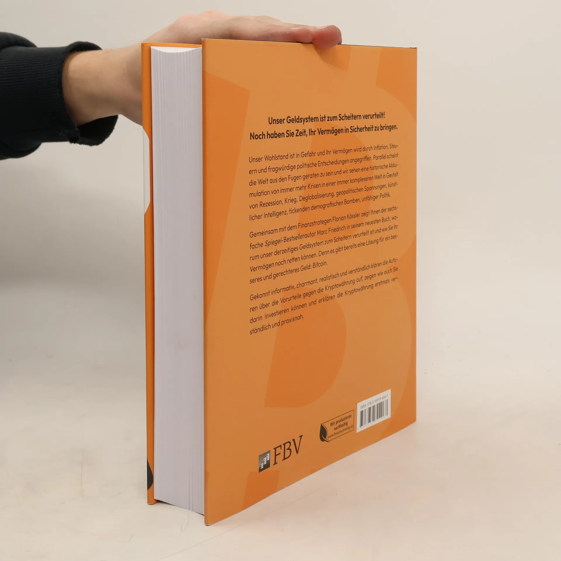 "Unser Geldsystem ist zum Scheitern verurteilt! Noch haben Sie Zeit, Ihr Vermögen in Sicherheit zu bringen. Unser Wohlstand ist in Gefahr und Ihr Vermögen wird durch Inflation, Steuern und fragwürdige politische Entscheidungen angegriffen. Parallel scheint die Welt aus den Fugen geraten zu sein und wir sehen eine historische Akkumulation von immer mehr Krisen in einer immer komplexeren Welt in Gestalt von Rezession, Krieg, Deglobalisierung, geopolitischen Spannungen, künstlicher Intelligenz, tickenden demografischen Bomben, unfähiger Politik. Gemeinsam mit dem Finanzstrategen Florian Kössler zeigt Ihnen der sechsfache Spiegel-Bestsellerautor Marc Friedrich in seinem neuesten Buch, warum unser derzeitiges Geldsystem zum Scheitern verurteilt ist und wie Sie Ihr Vermögen noch retten können. Denn es gibt bereits eine Lösung für ein besseres und gerechteres Geld: Bitcoin. Gekonnt informativ, charmant, realistisch und verständlich klären die Autoren über die Vorurteile gegen die Kryptowährung auf, zeigen wie auch Sie darin investieren können und erklären die Kryptowährung erstmals verständlich und praxisnah."